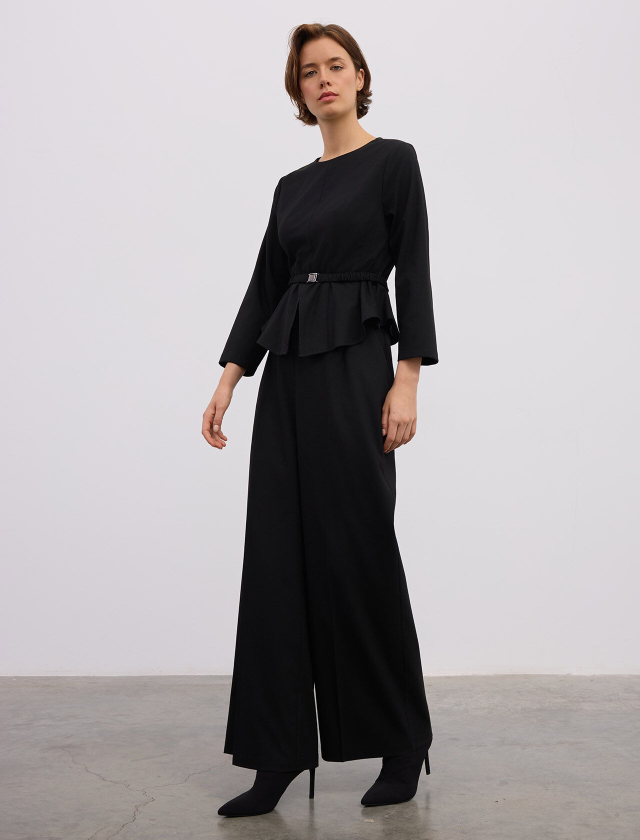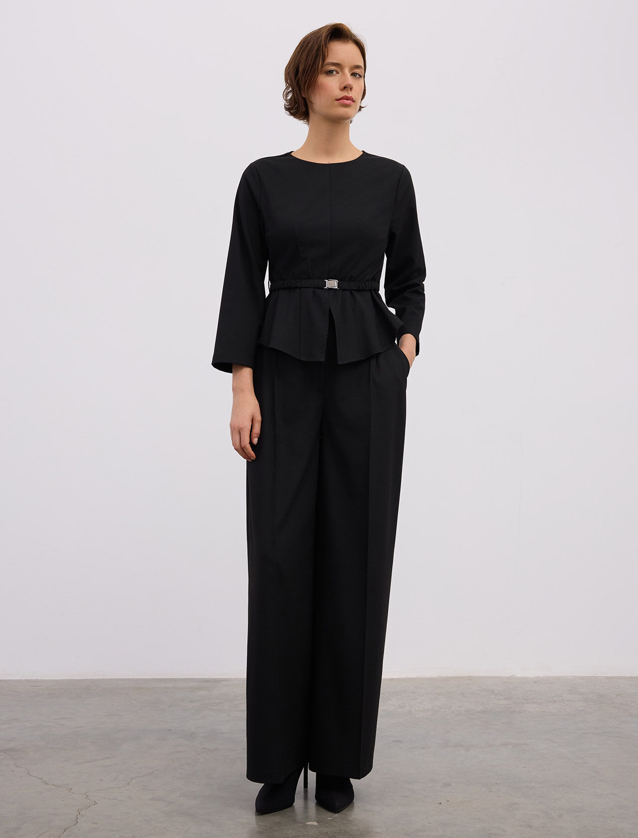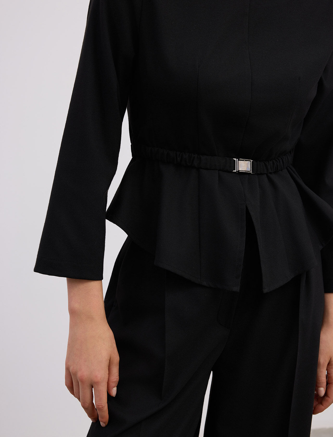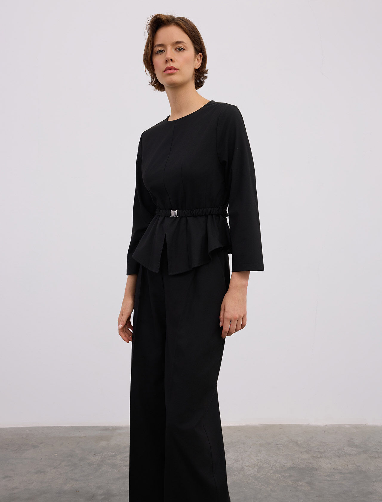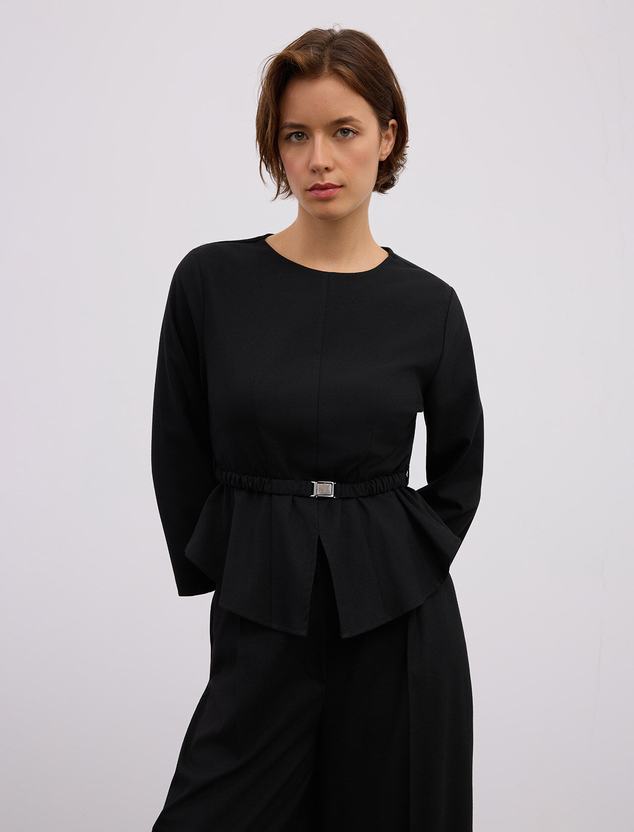 VISKON KARISIMLI KEMER DETAYLI PEPLUM BLUZ