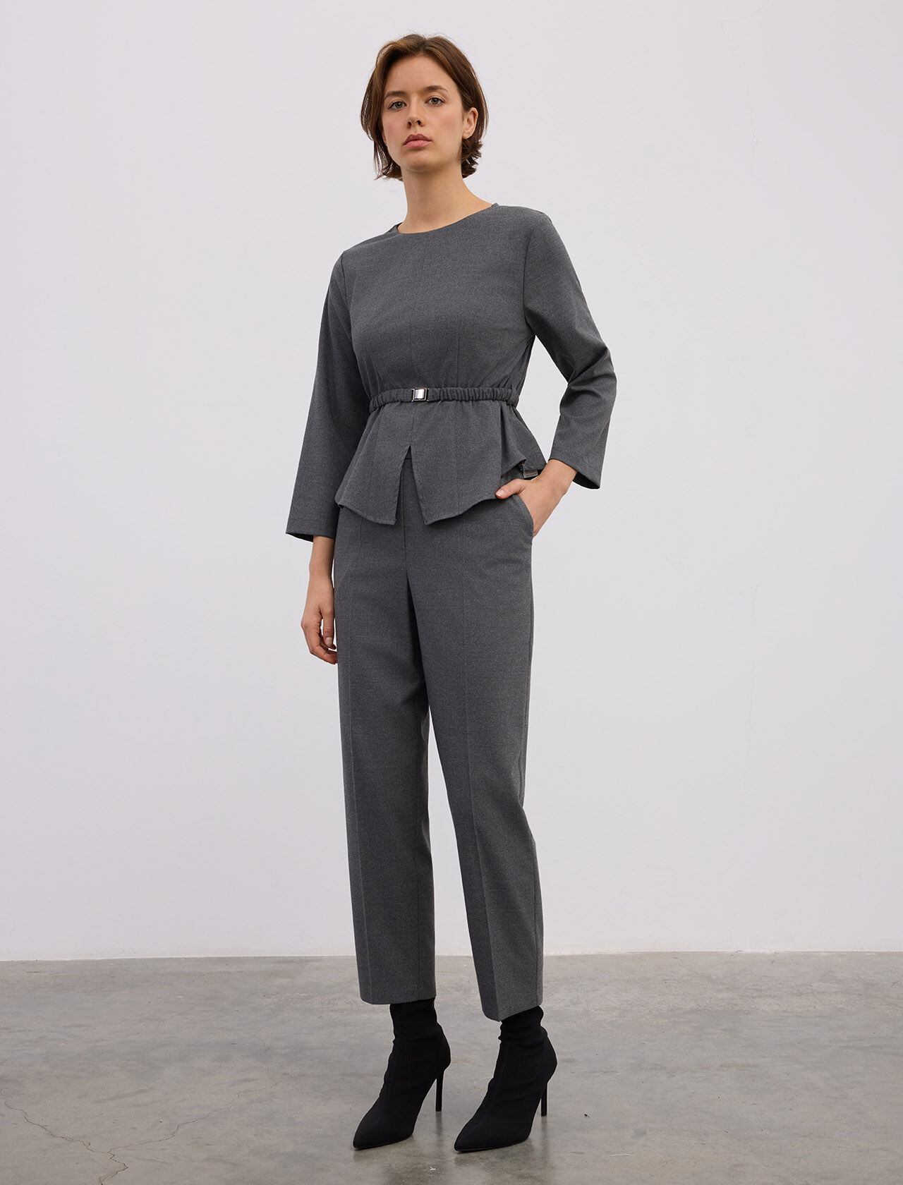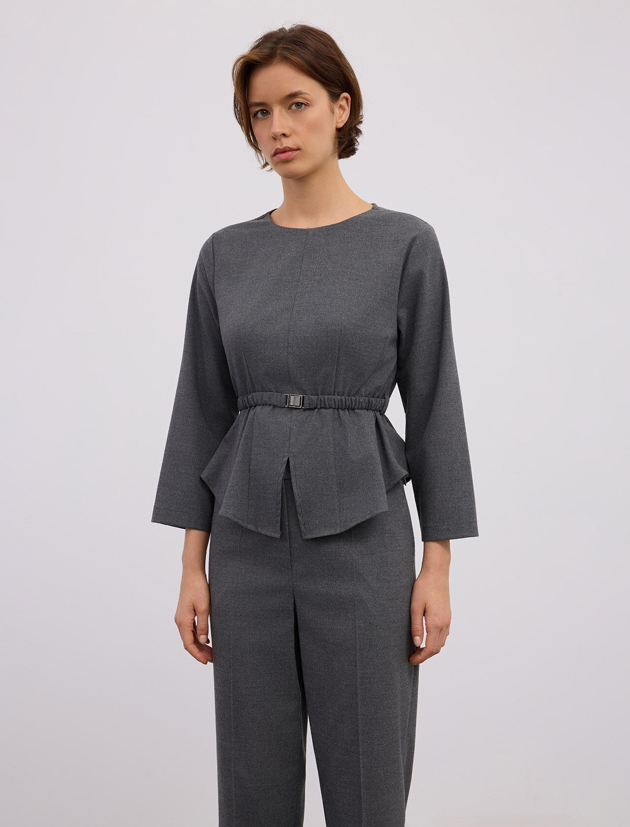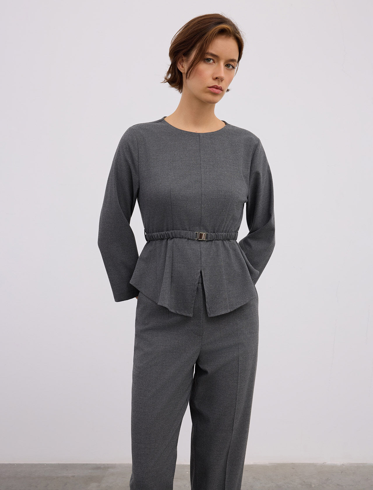 VISKON KARISIMLI KEMER DETAYLI PEPLUM BLUZ