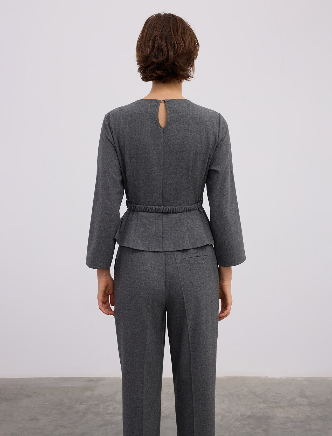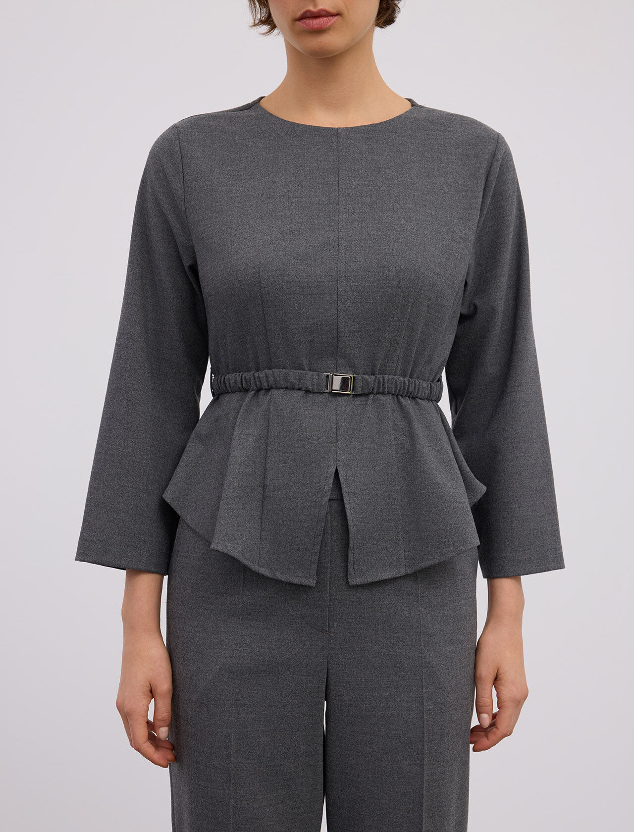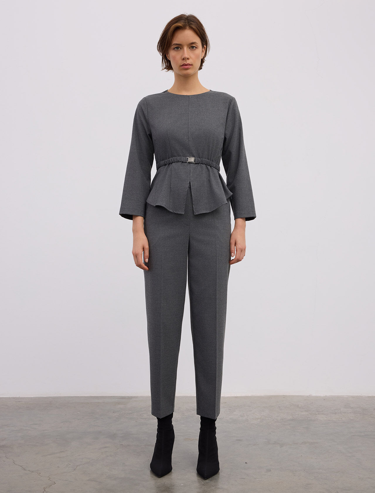 VISKON KARISIMLI KEMER DETAYLI PEPLUM BLUZ