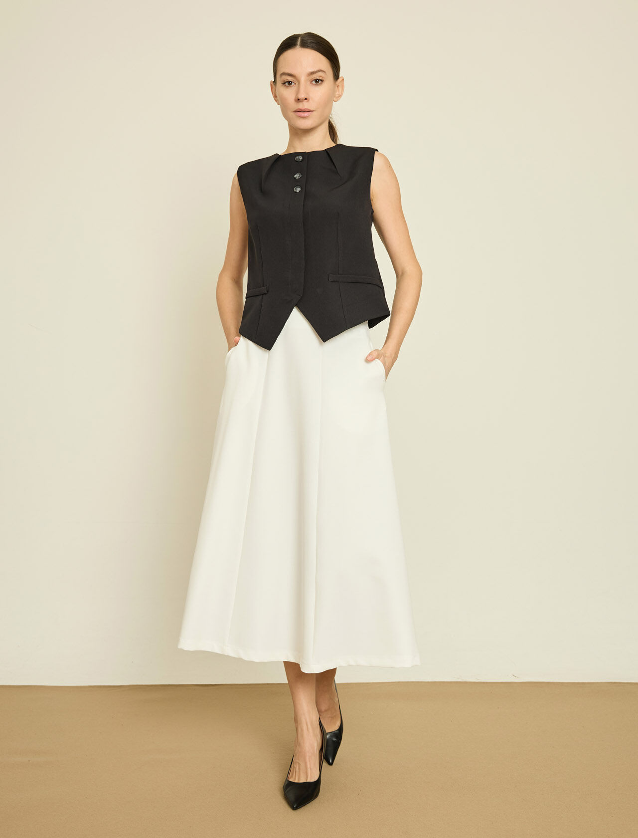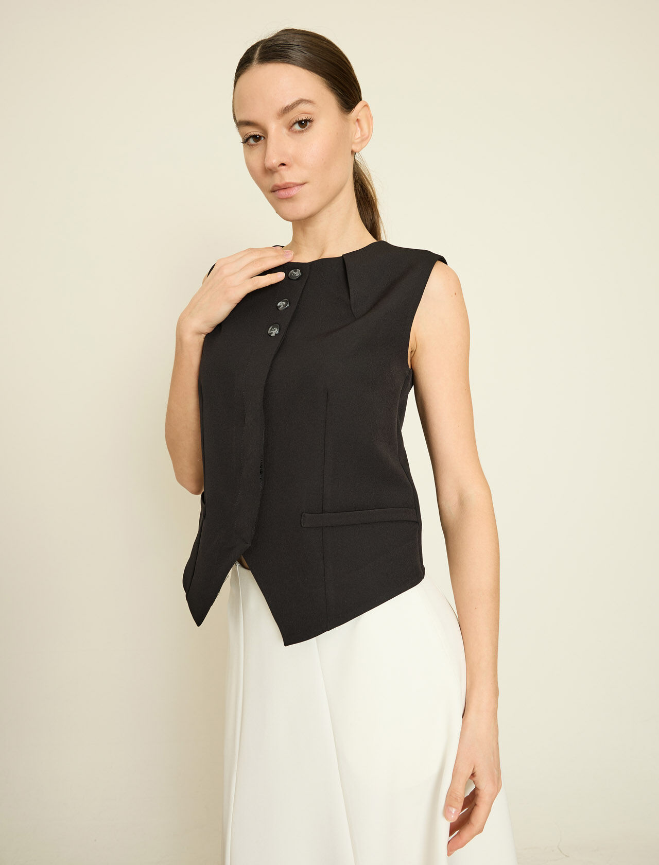 PAMUK KARISIM ASIMETRIK KESIM ORME YELEK