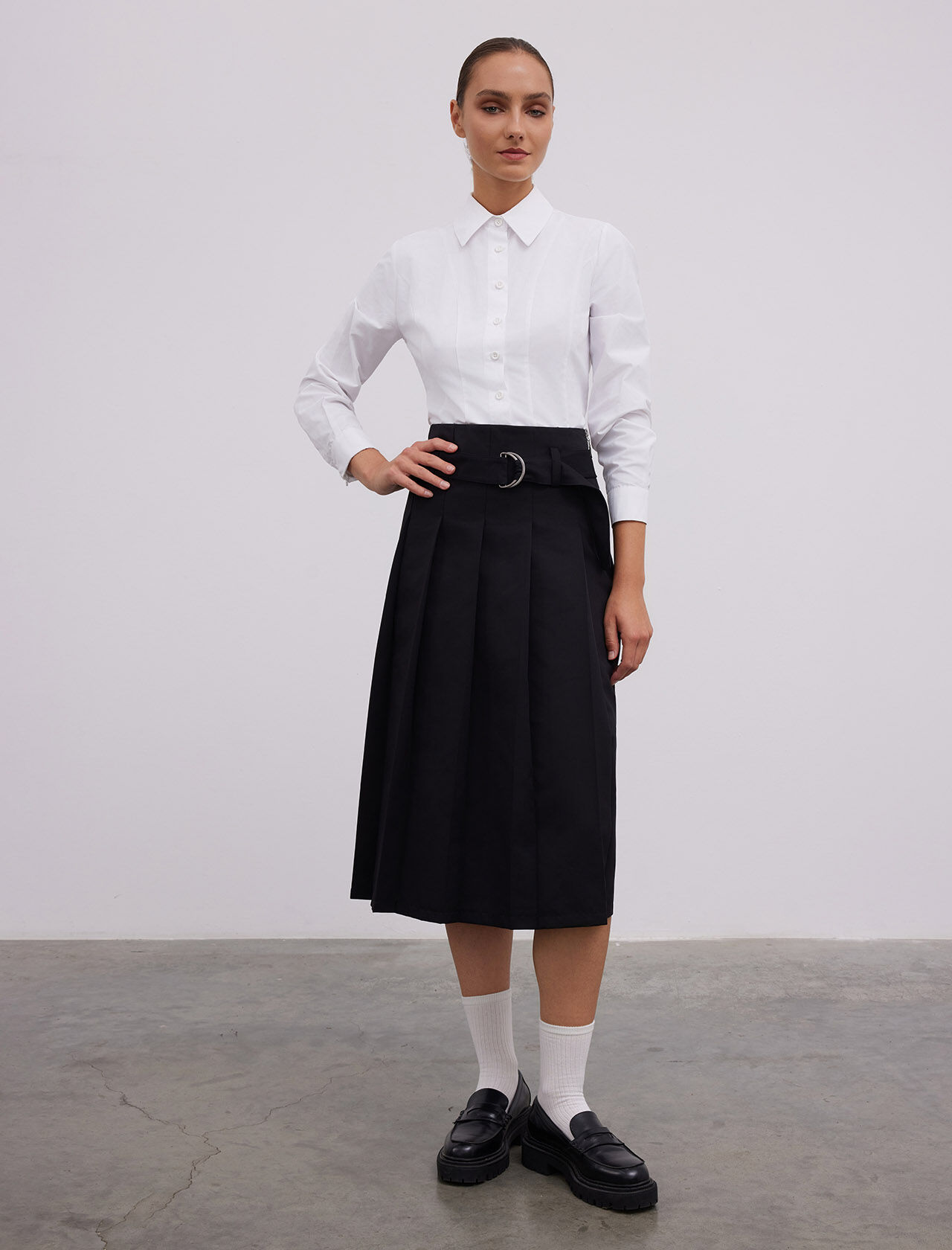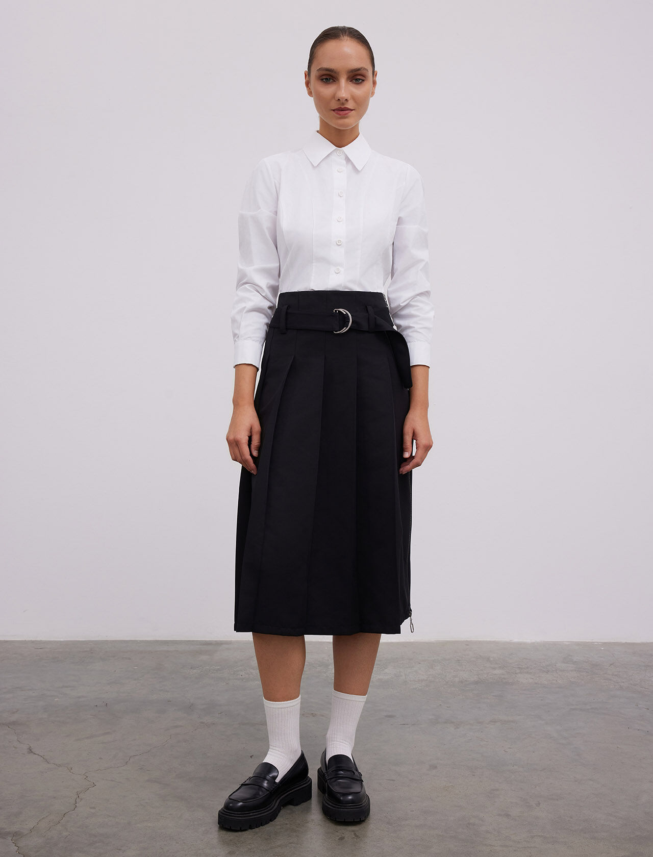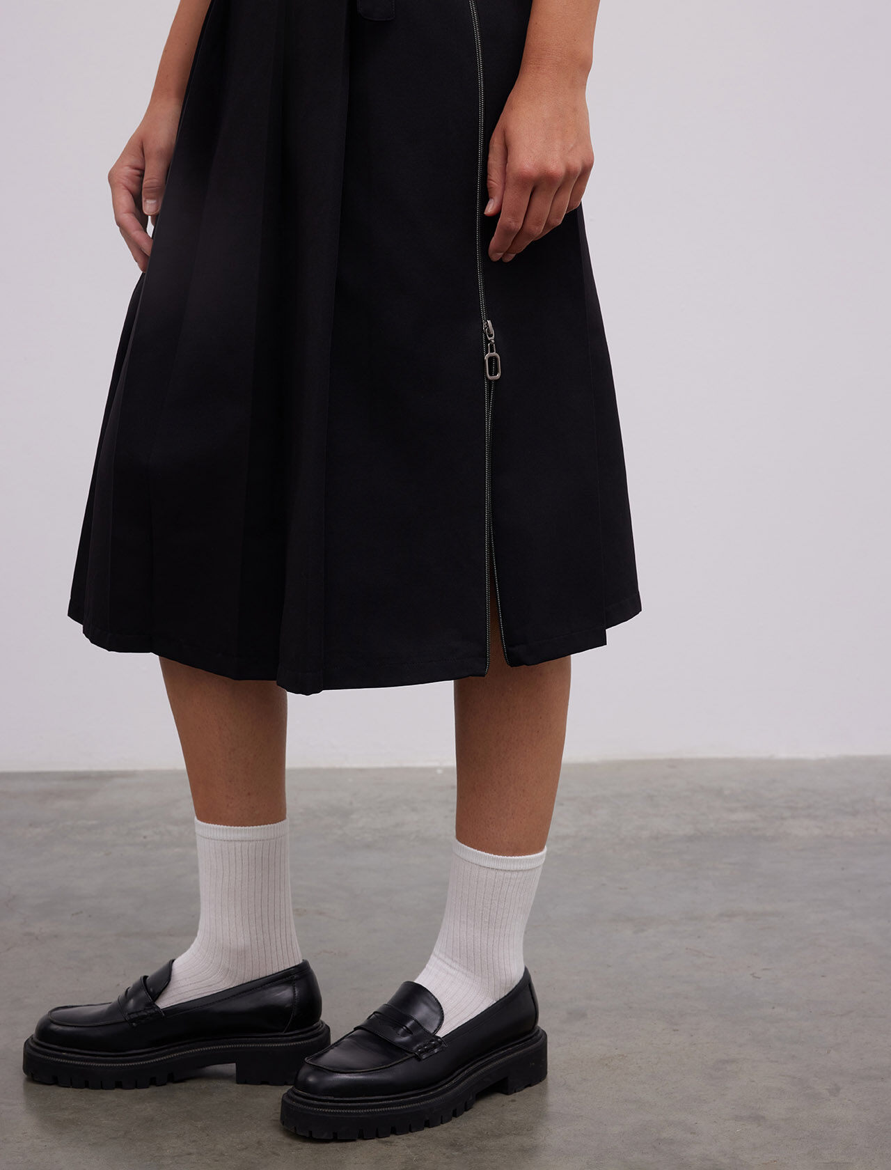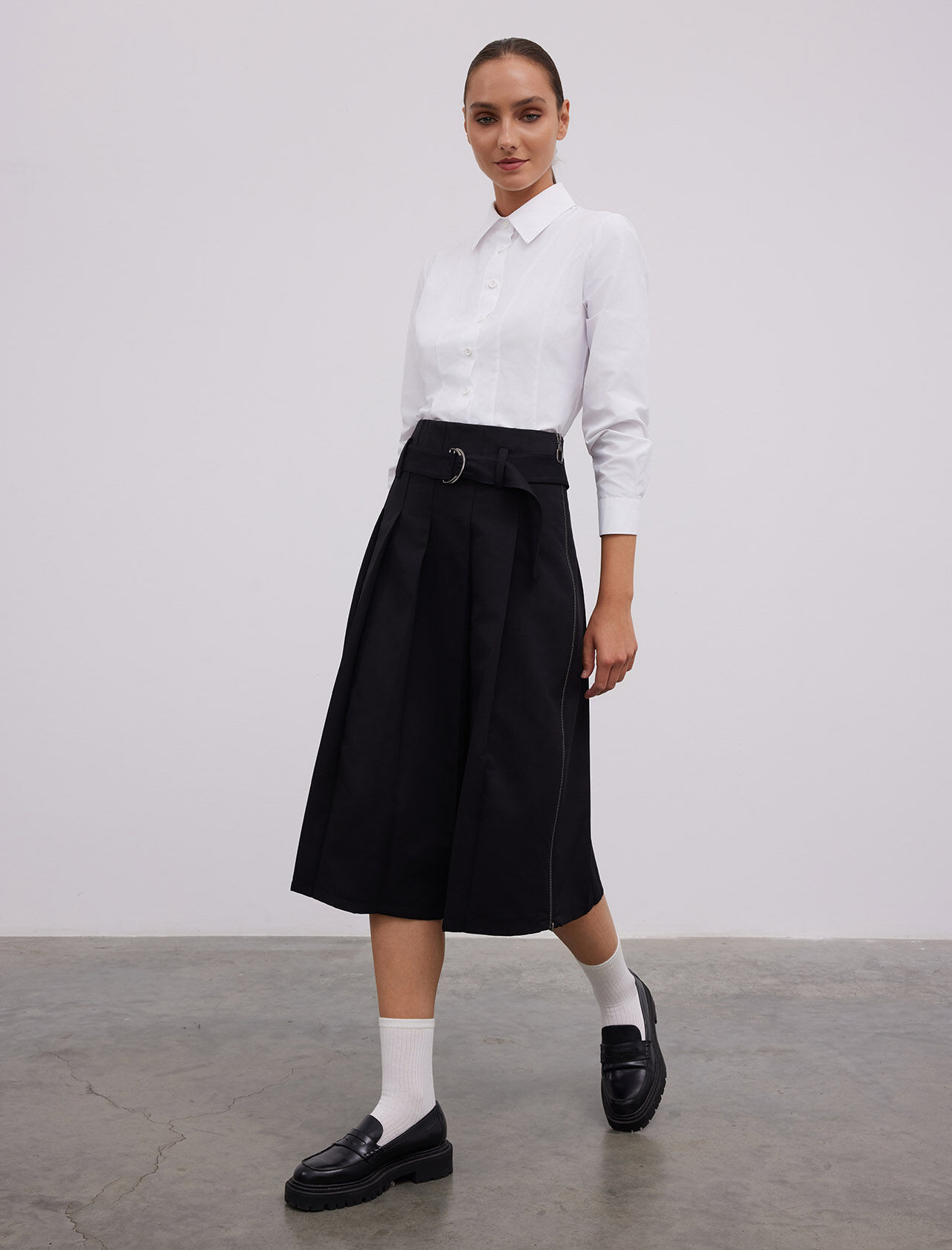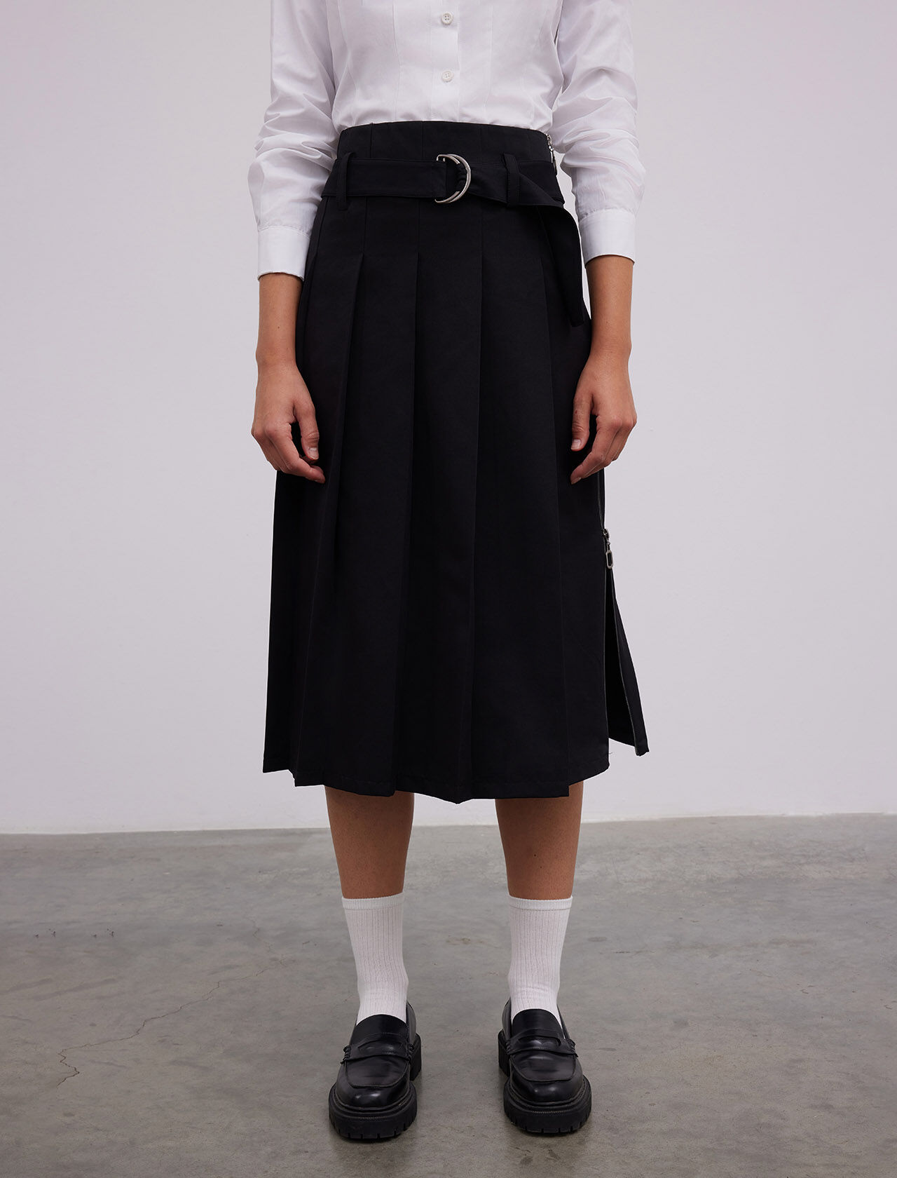YANDA FERMUAR DETAYLI PILELI MIDI ETEK