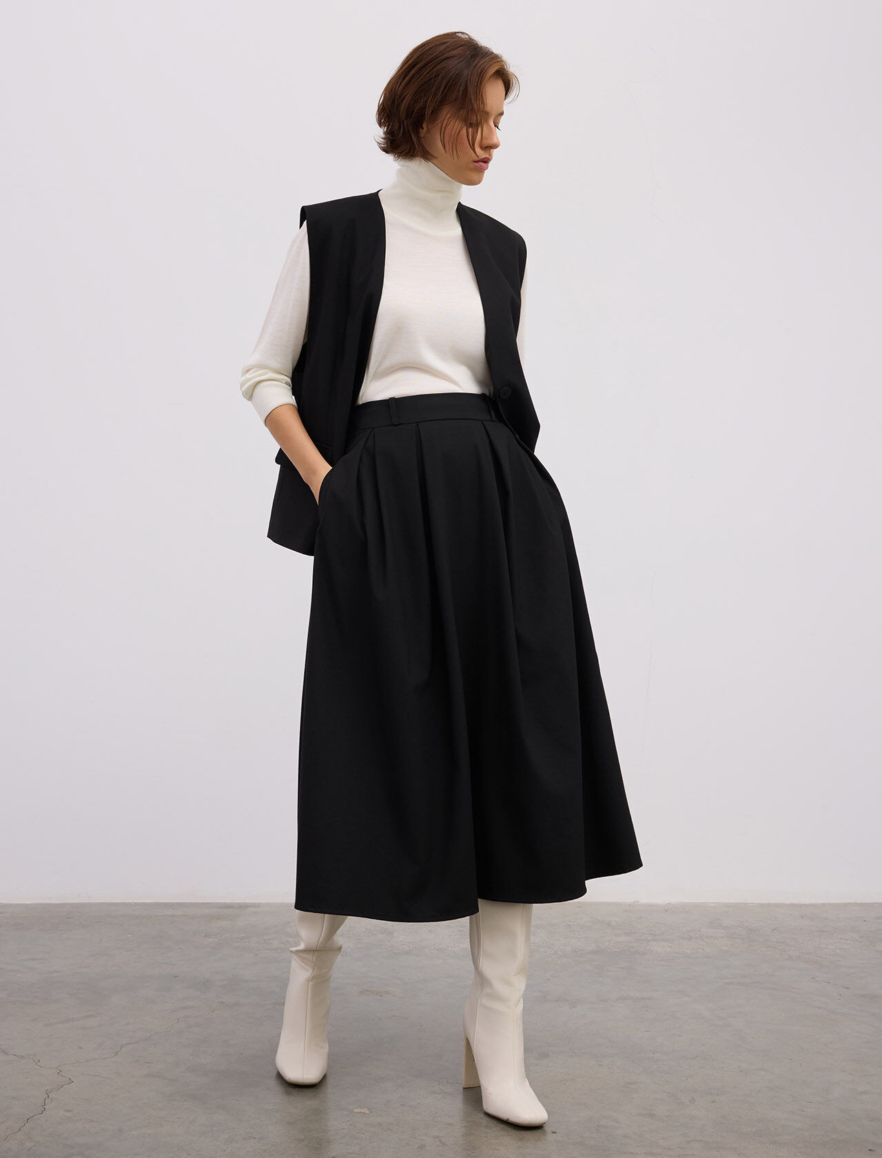 Arkadan Bağlamalı Cepli Tencel Yelek
