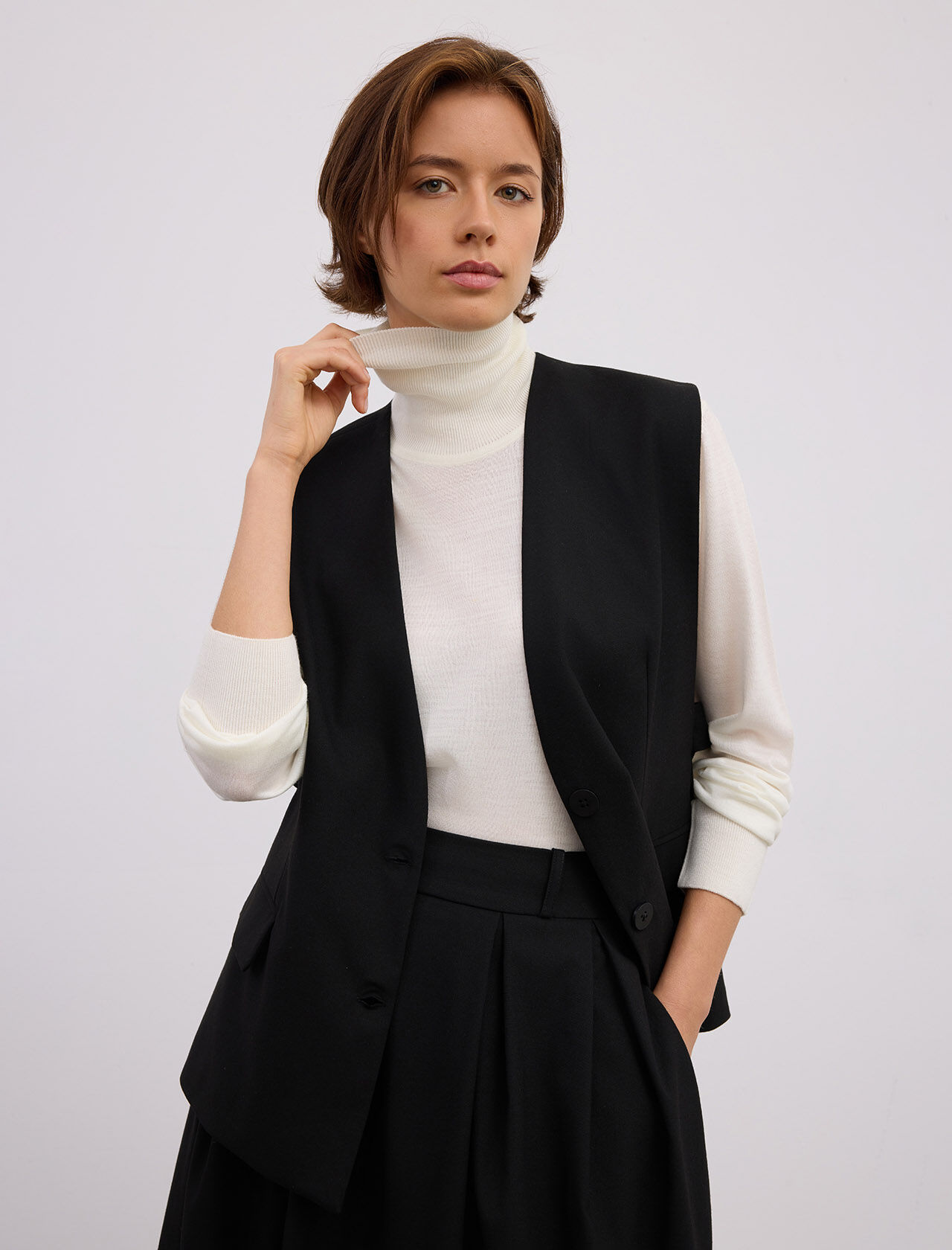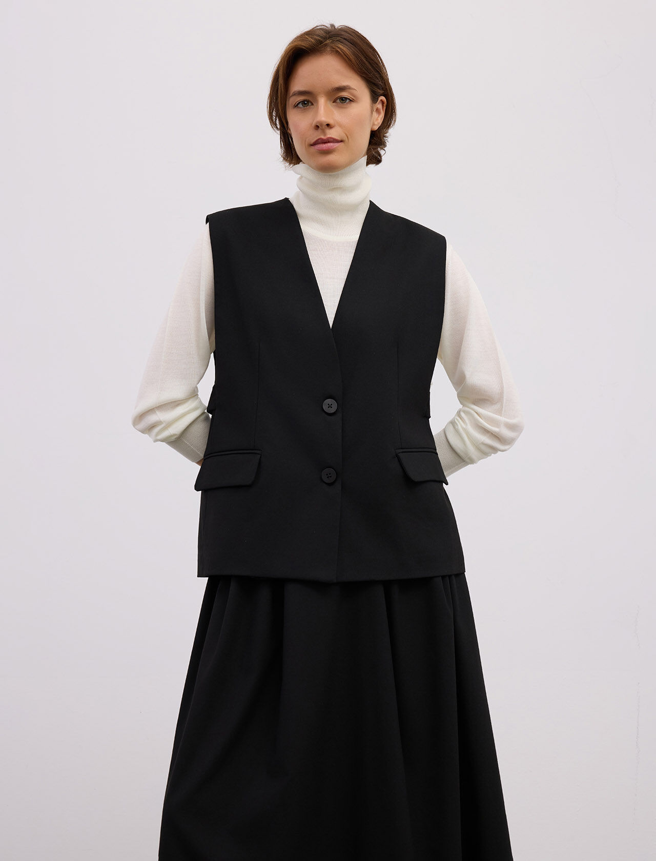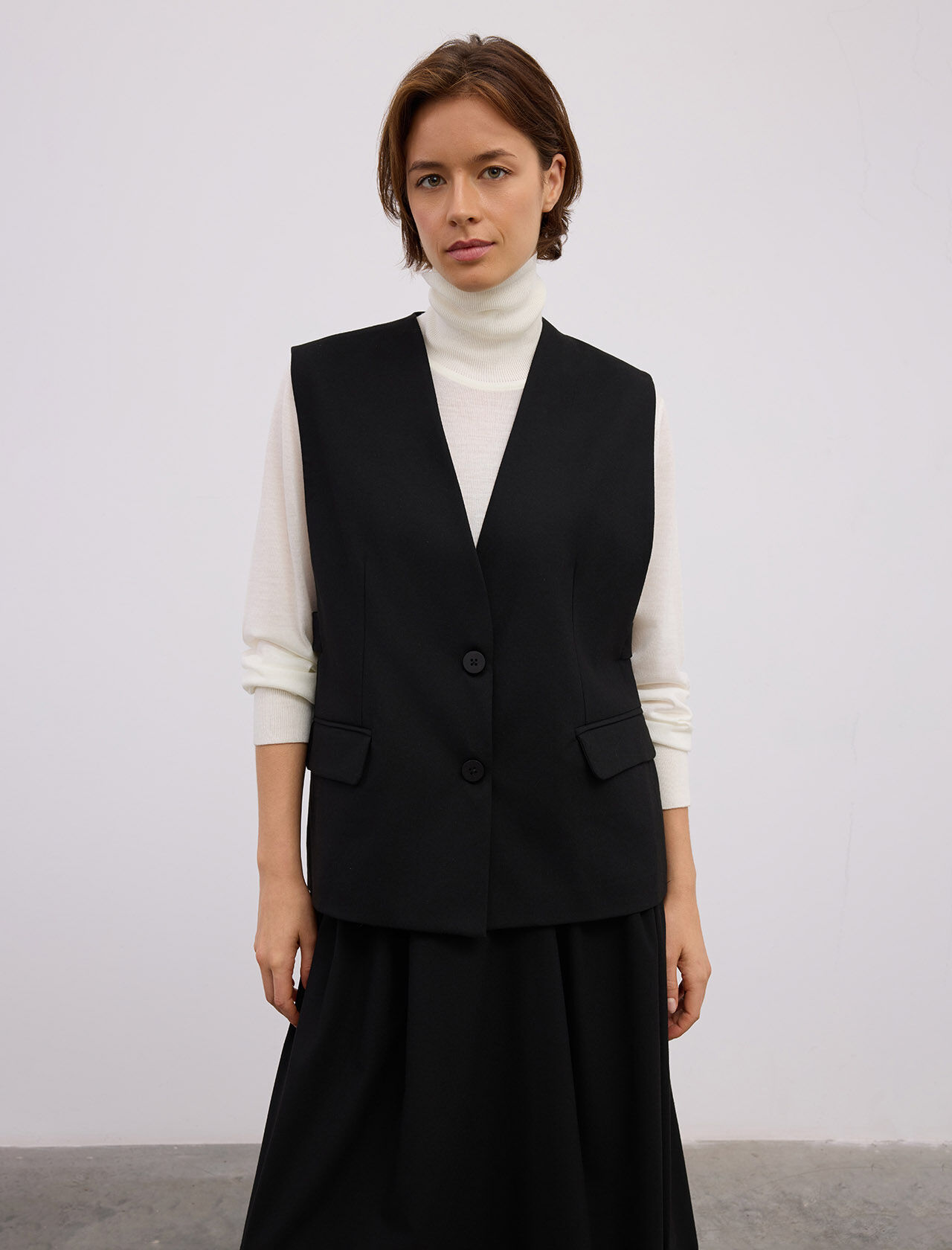 YANLARI BANT DETAYLI V YAKA VISKON KARISIM YELEK