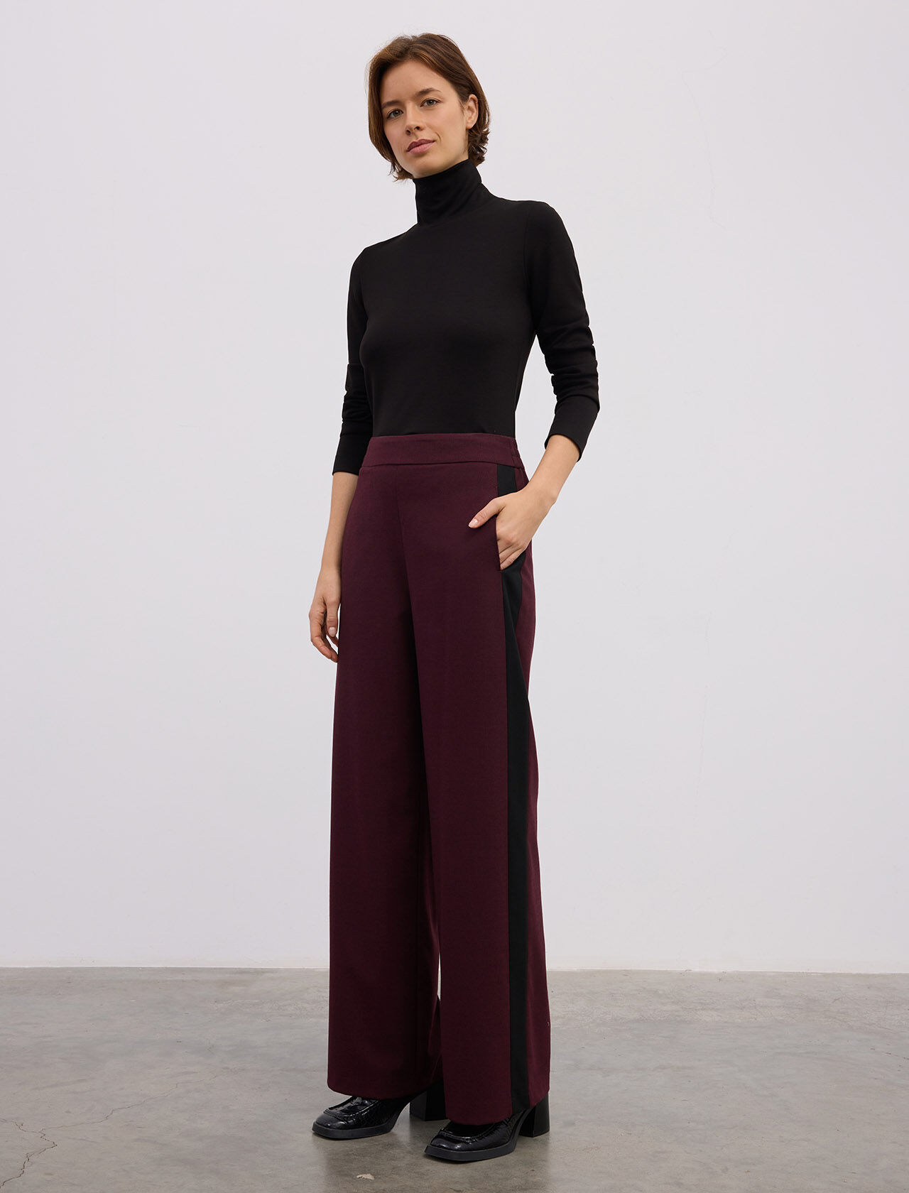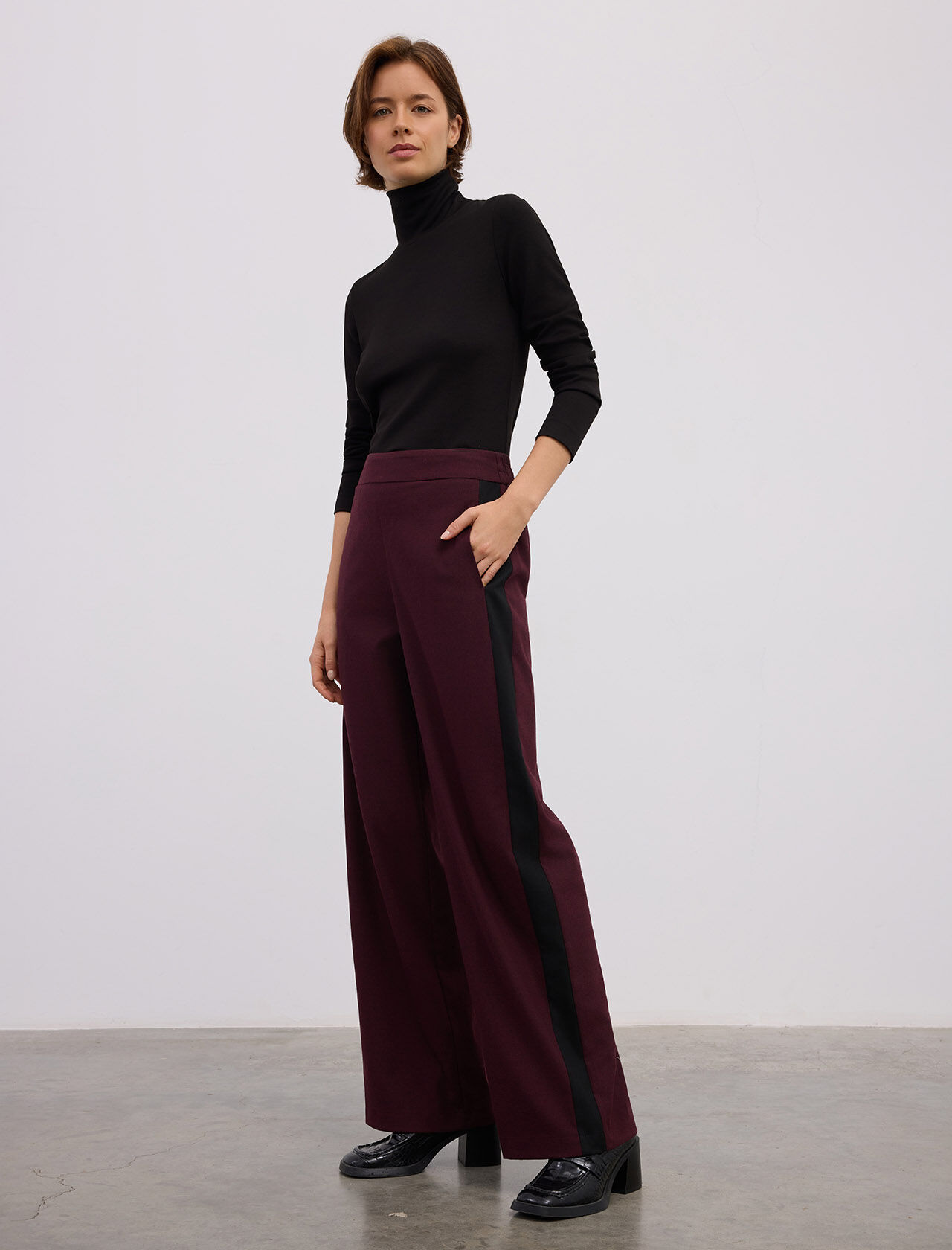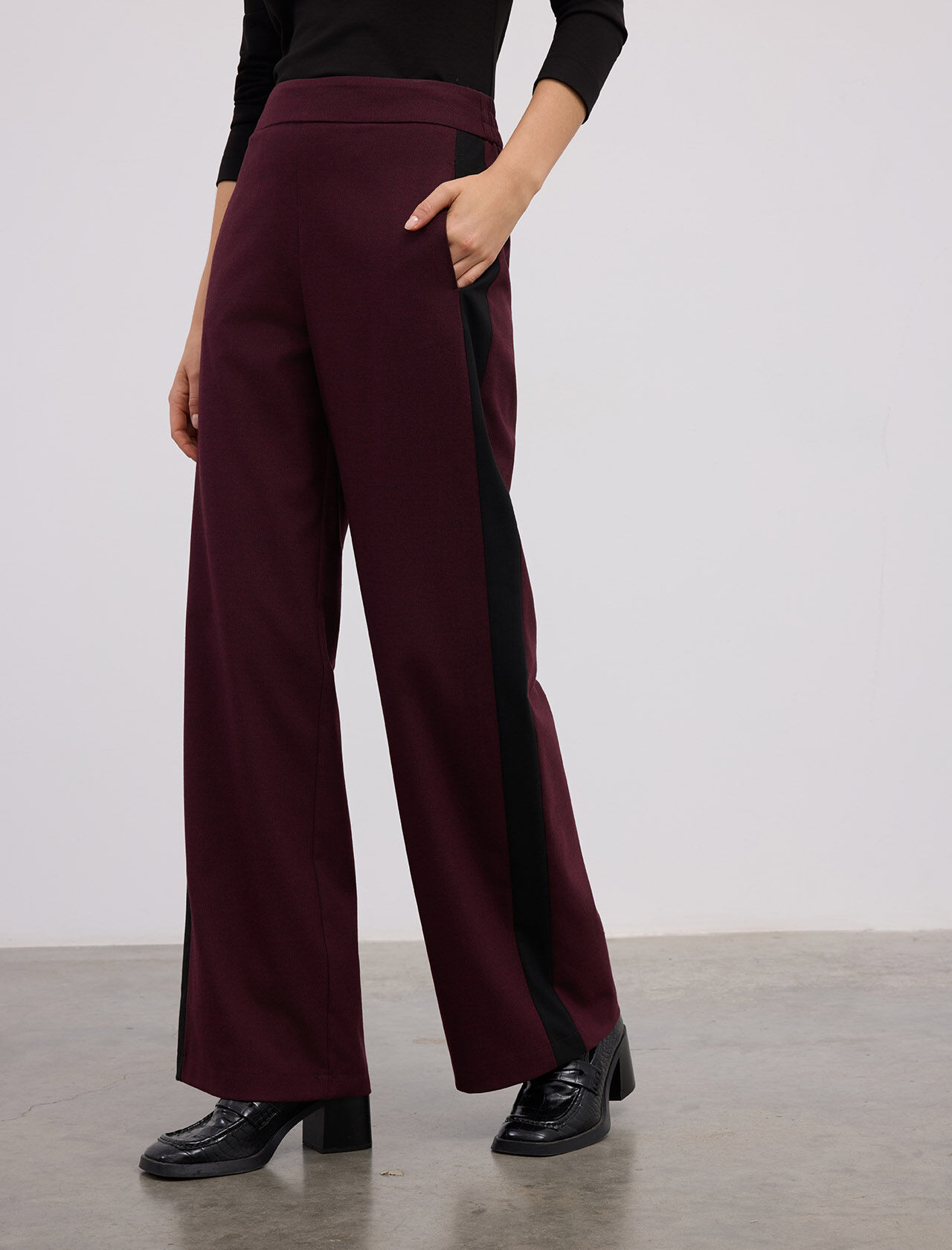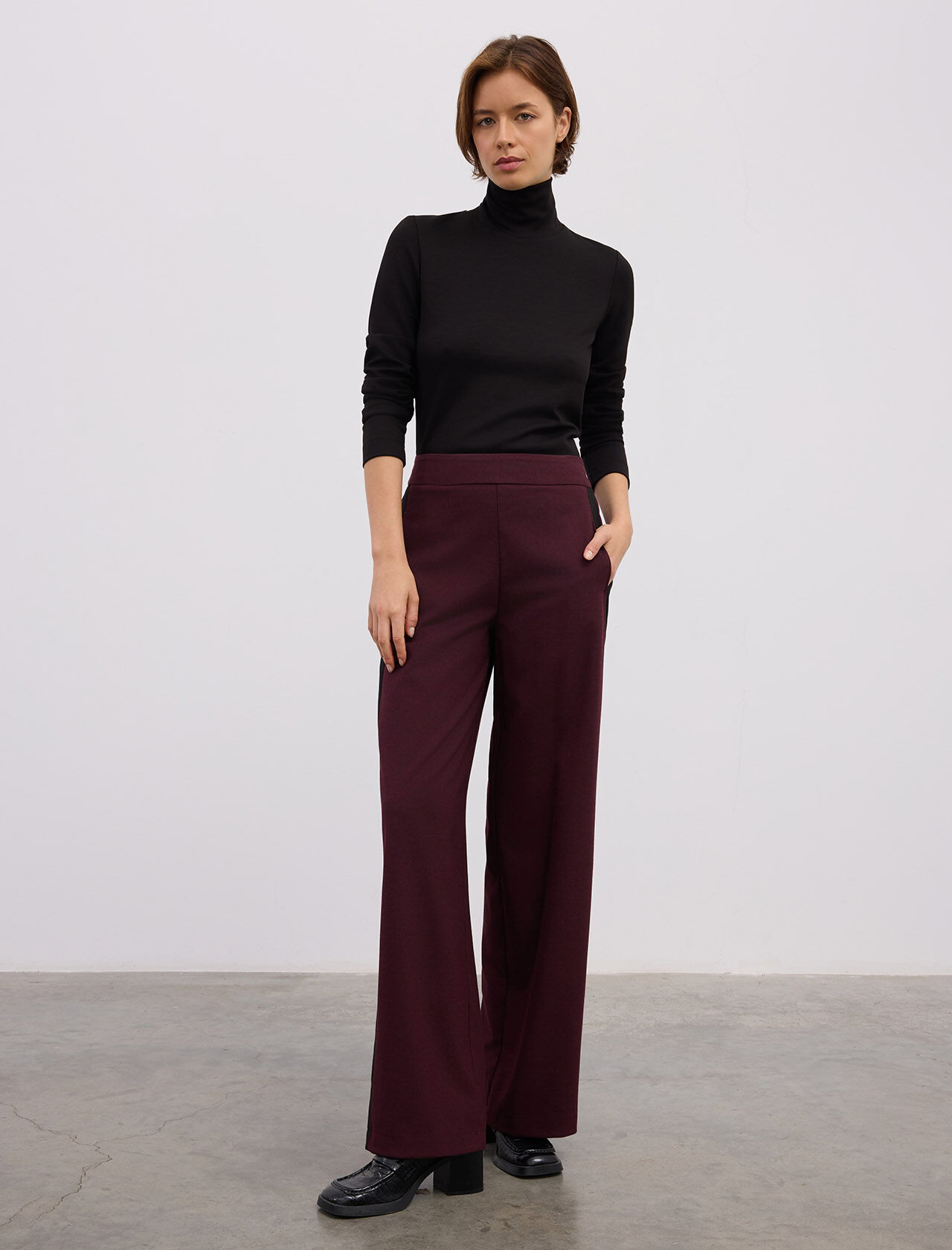 YANLARI KONTRAST SERITLI GENIS PACA PANTOLON