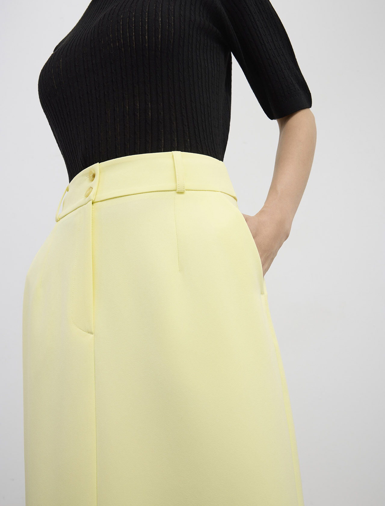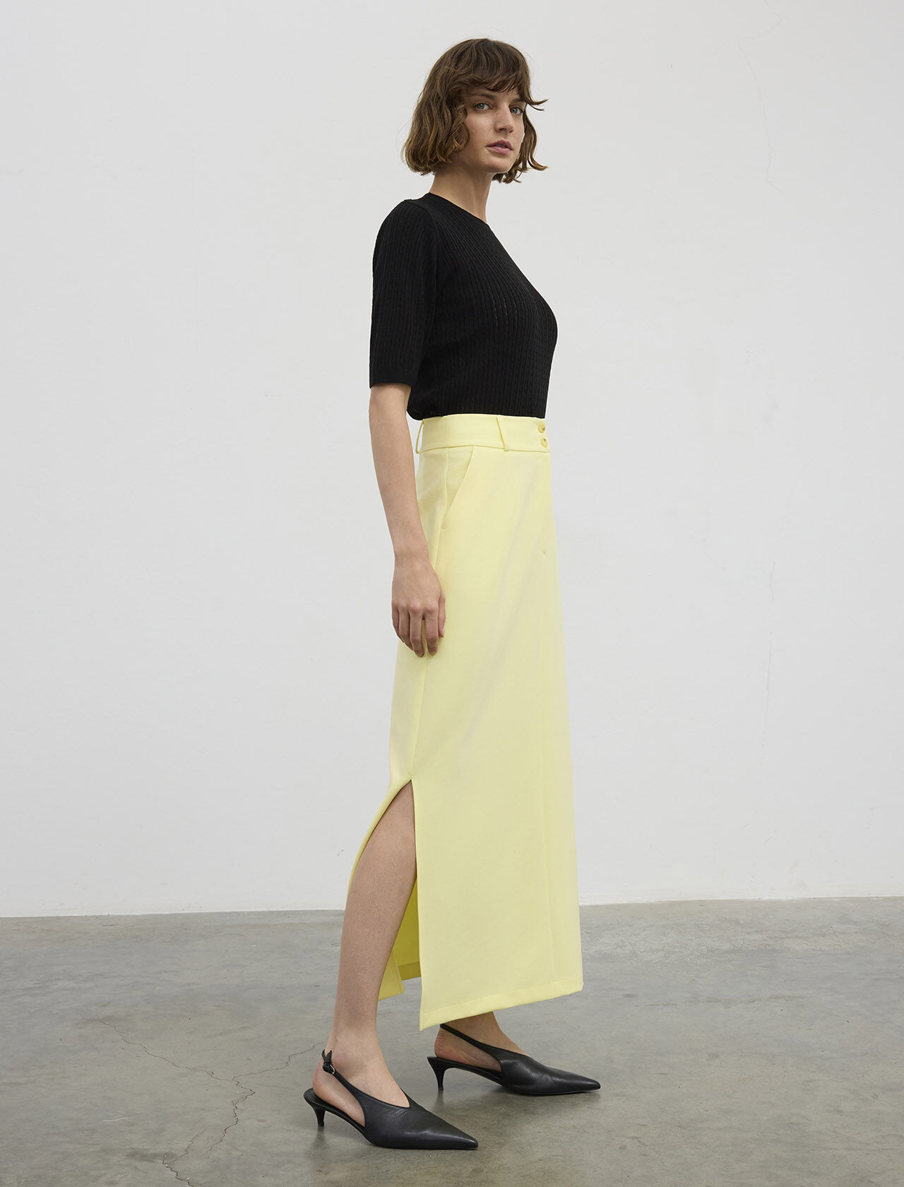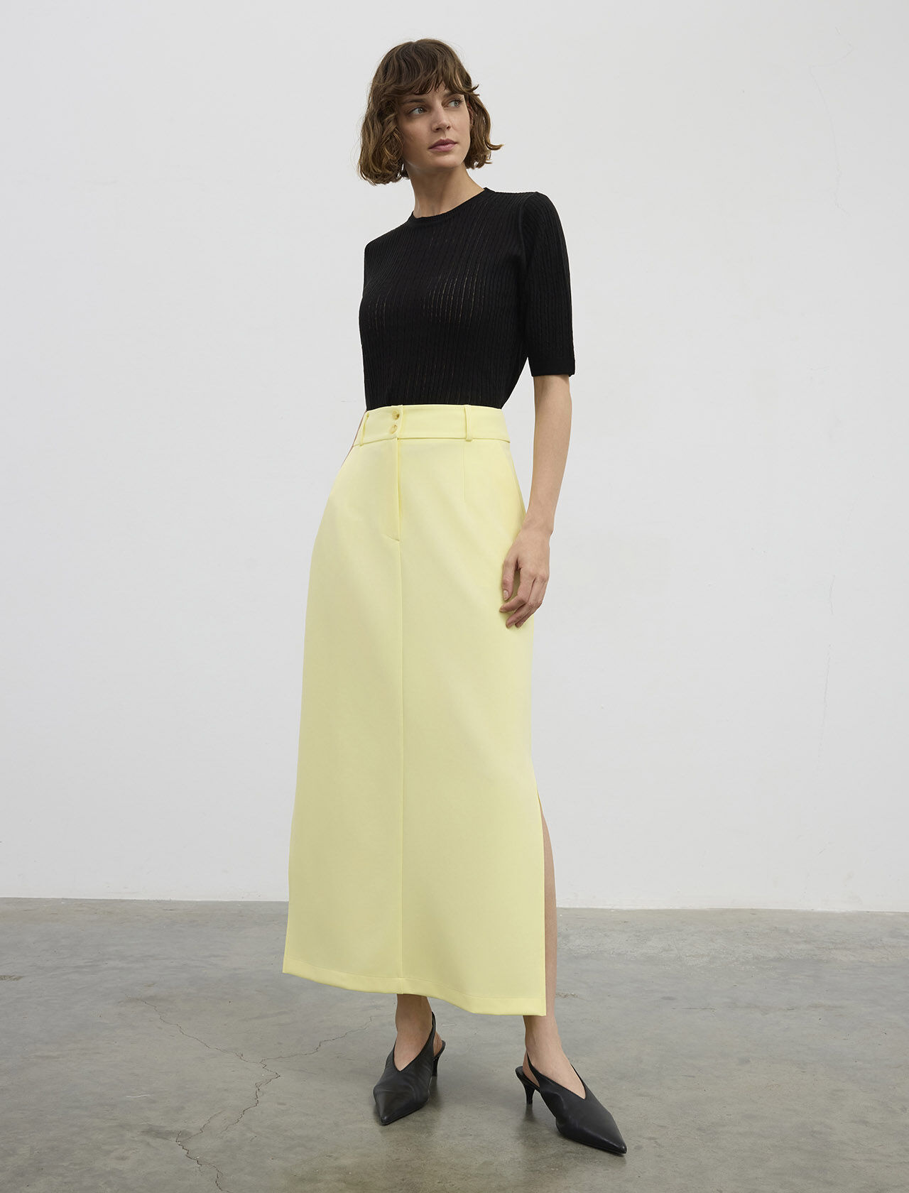 Önden Yırtmaçlı Midi Boy Viskon Karışımlı Etek