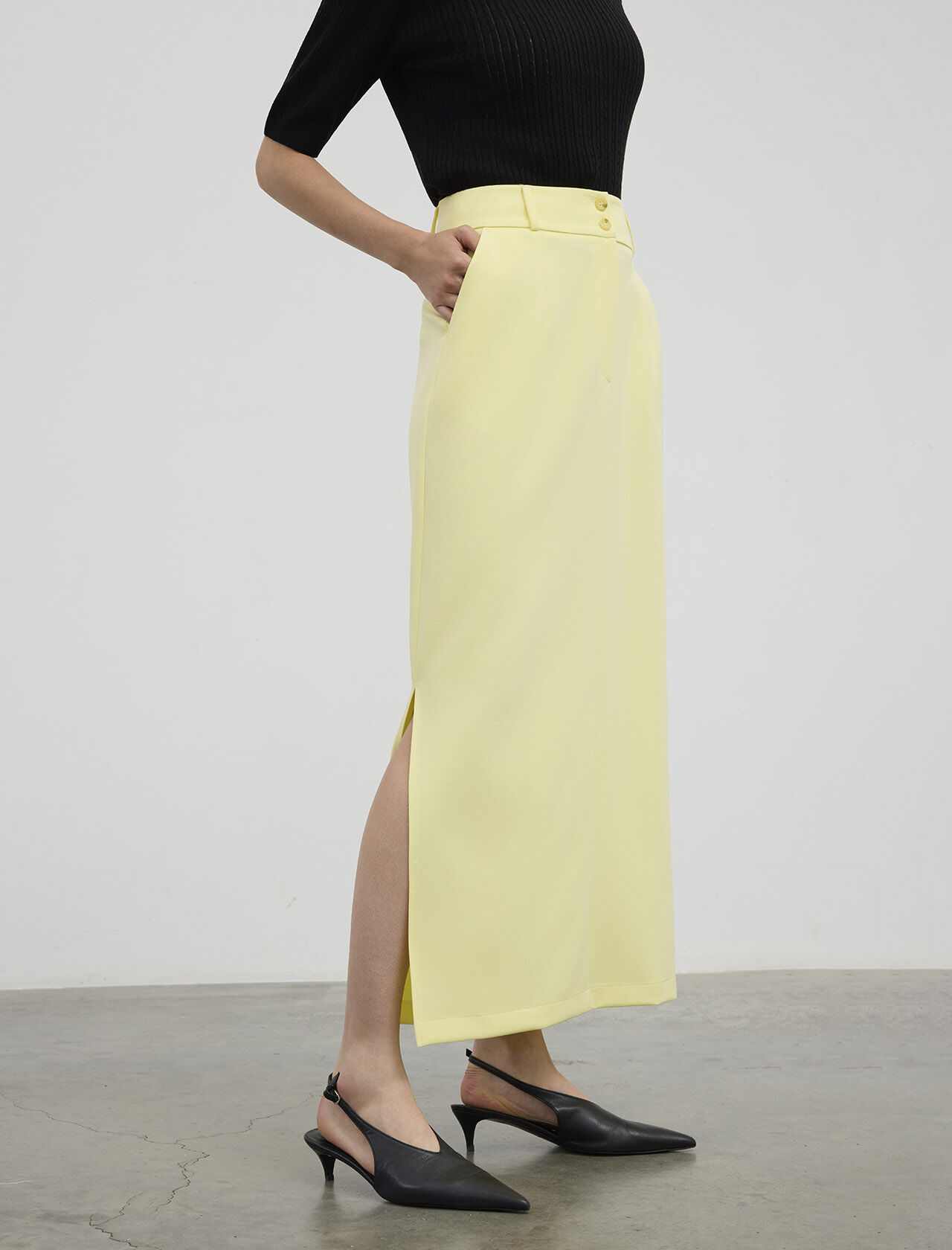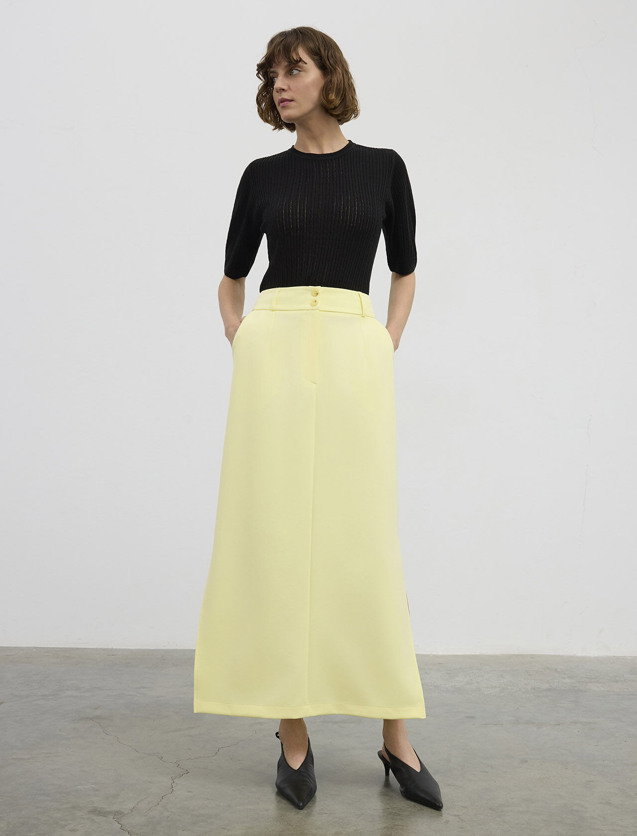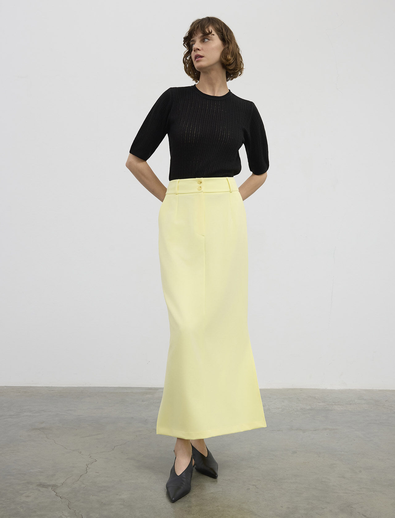 Önden Yırtmaçlı Midi Boy Viskon Karışımlı Etek