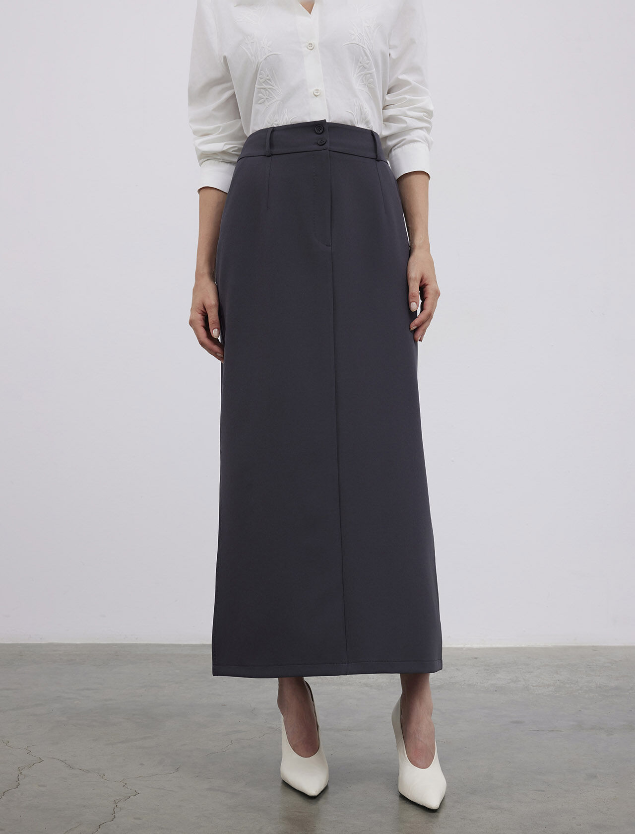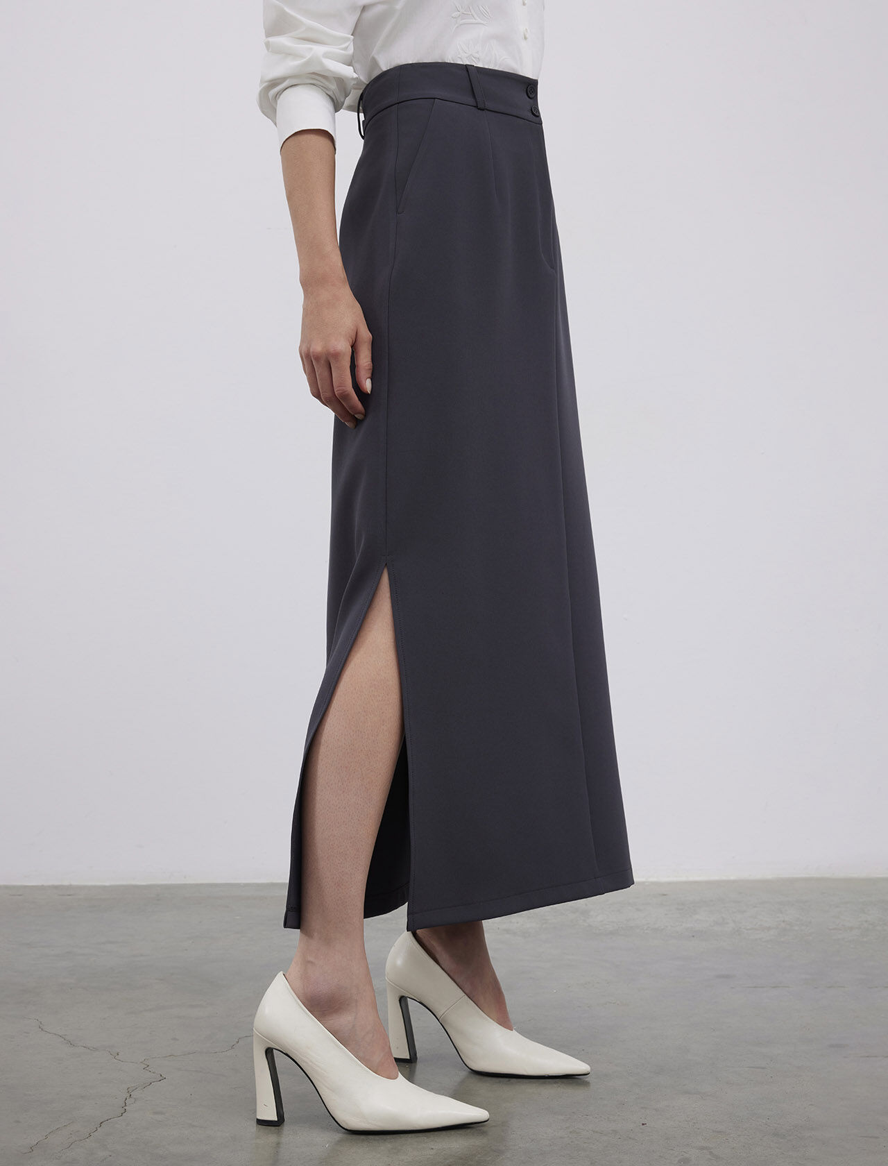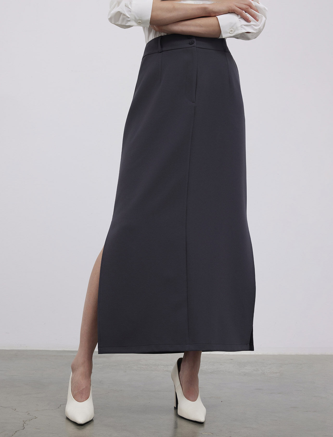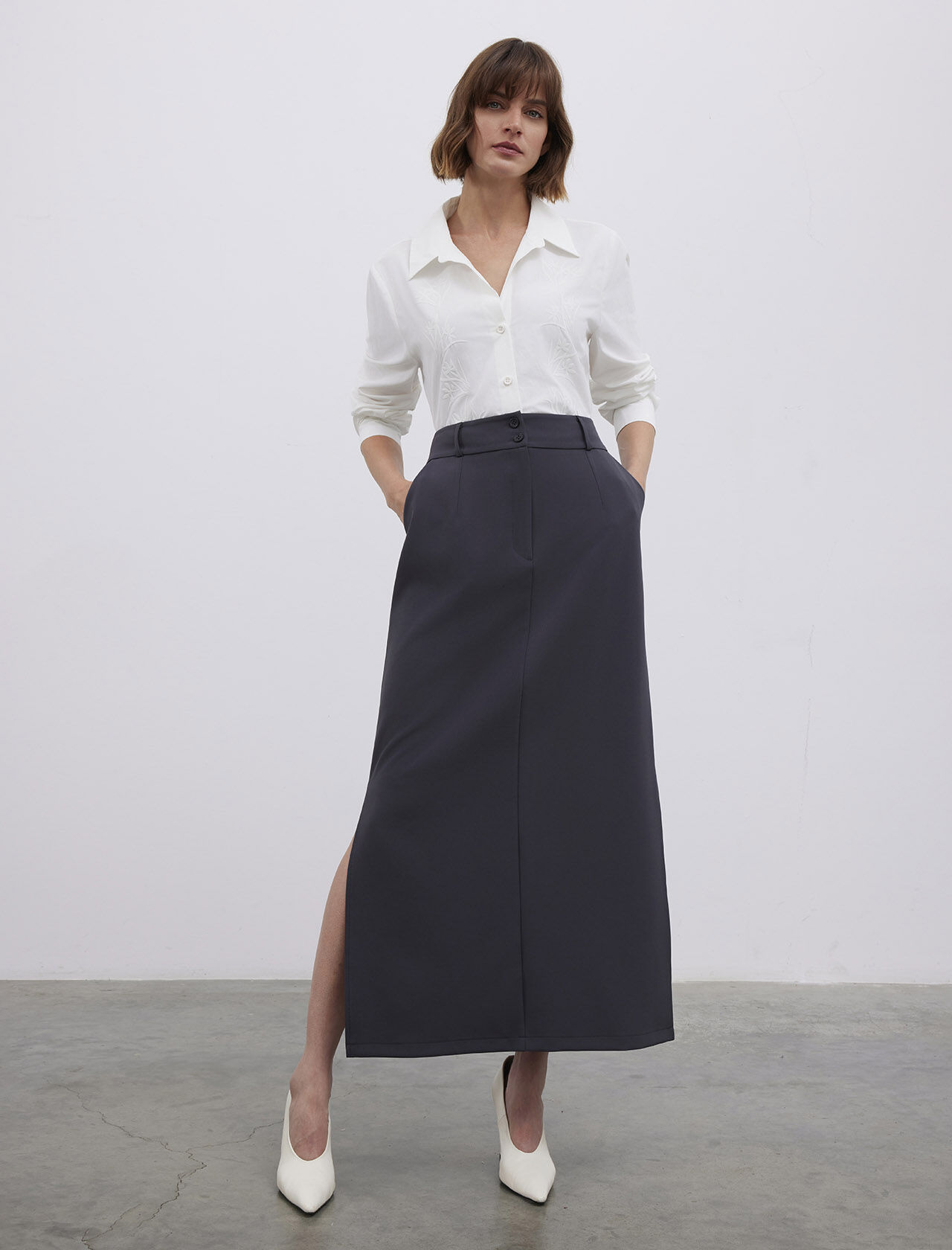 Yırtmaçlı Viskon Keten Midi Boy Etek