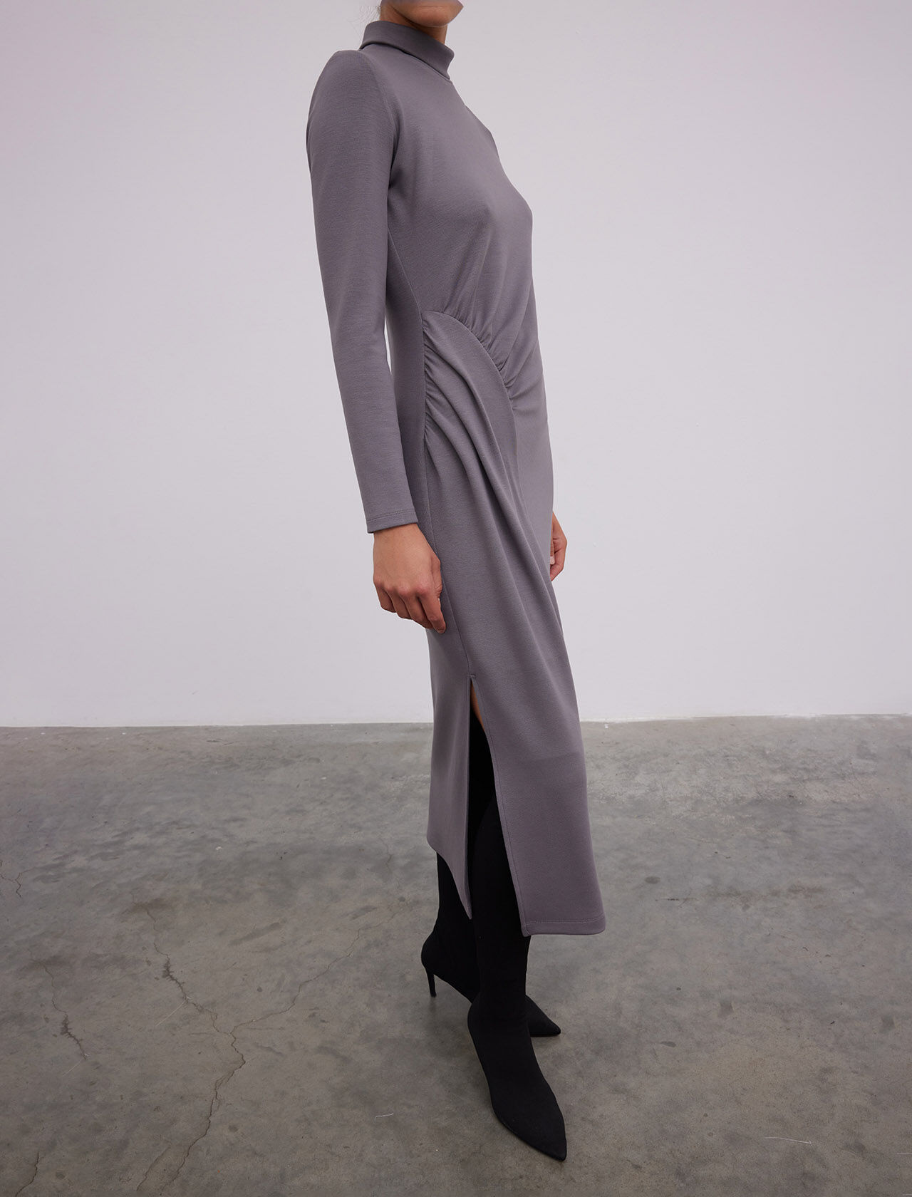 Volan Kollu Viskon Midi Boy Elbise