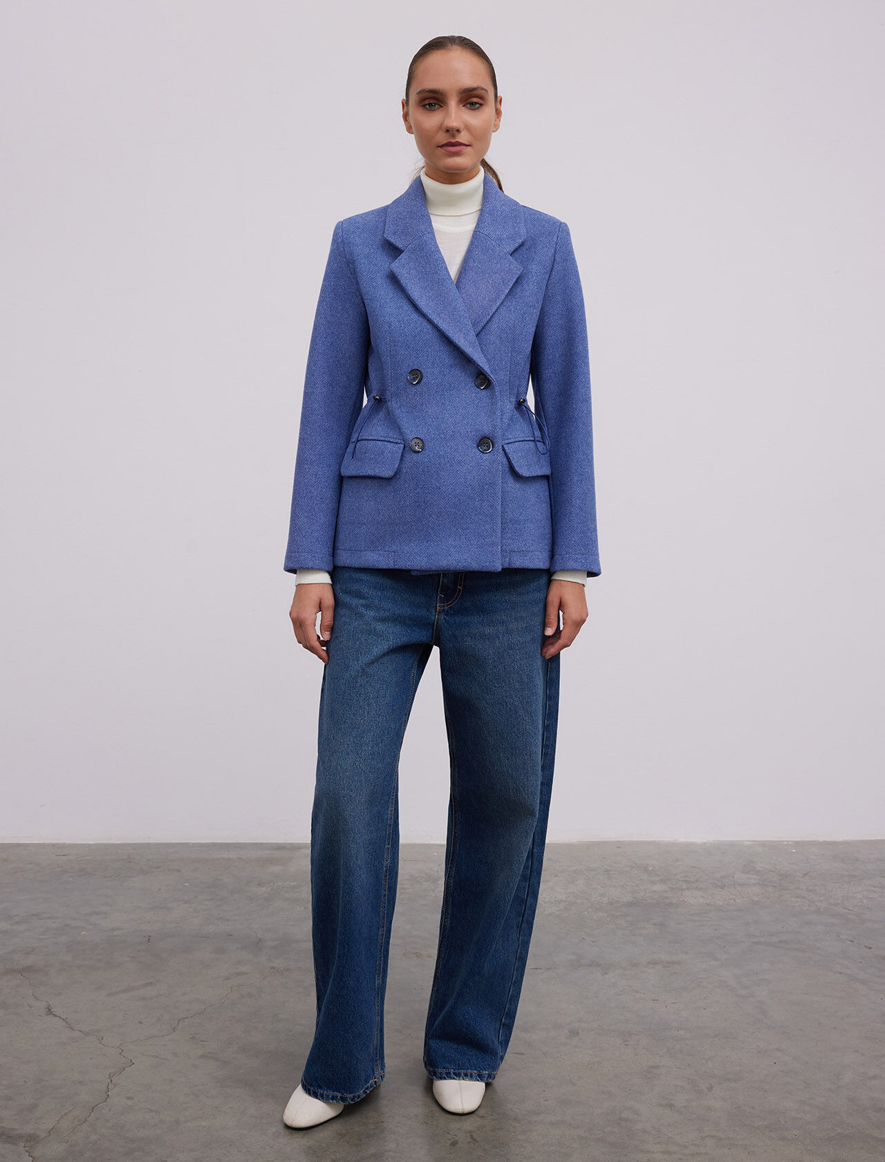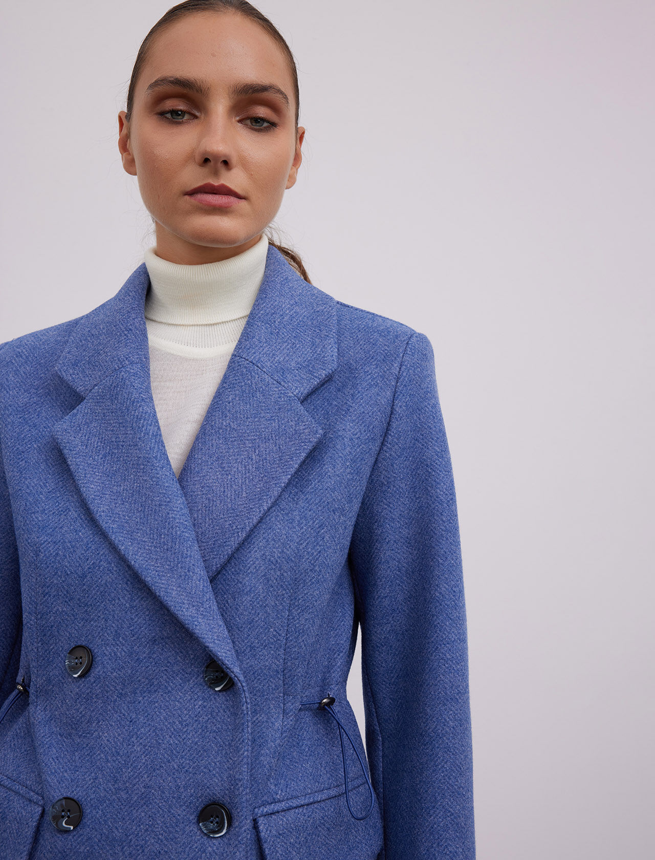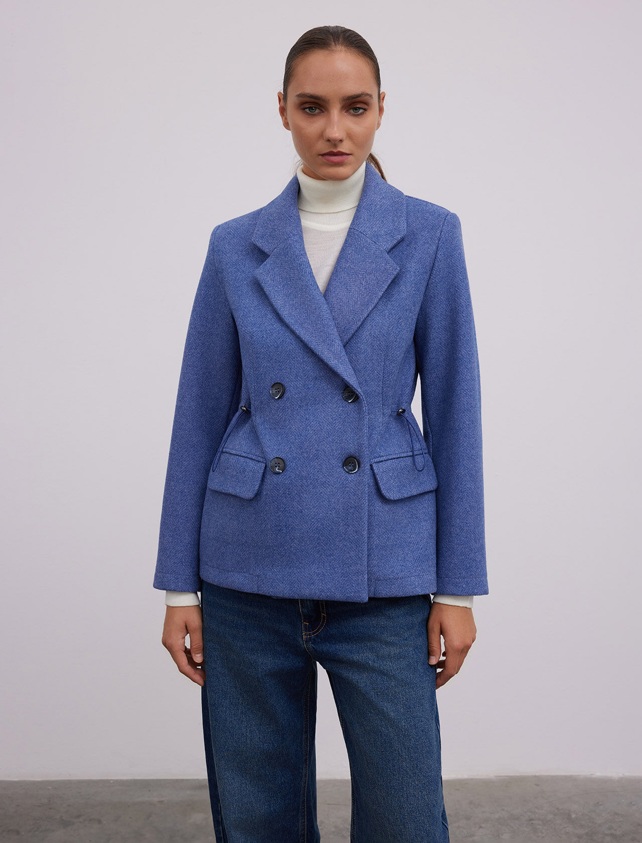 YUN KARISIM BELDE LASTIK DETAYLI KRUVAZE CEKET