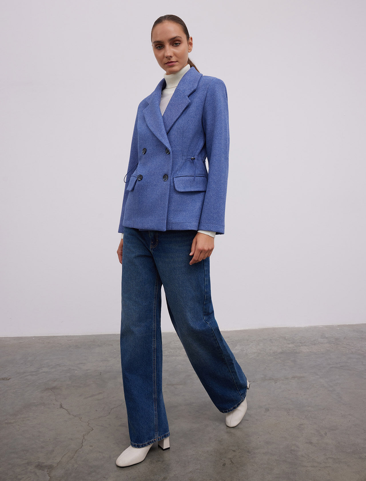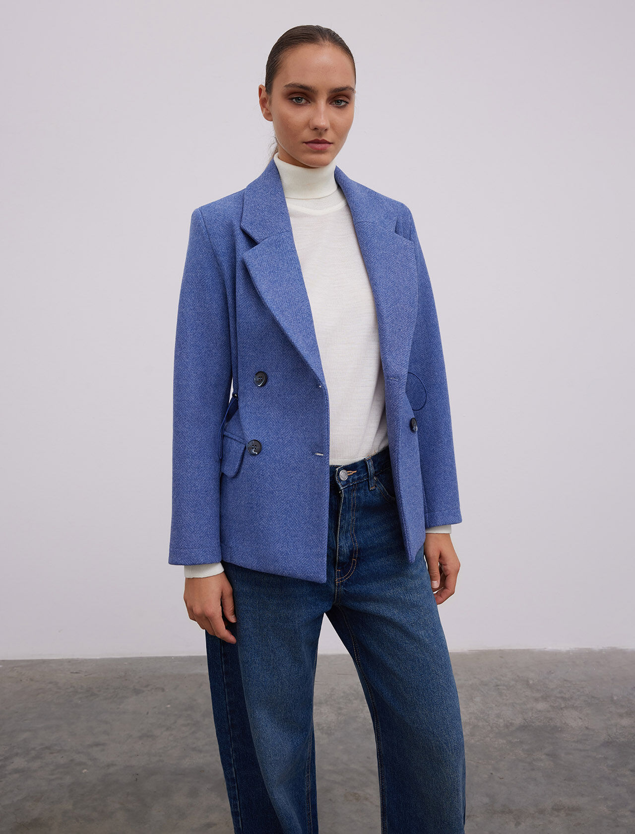 Kollarında Yırtmaç Detaylı Kruvaze Pamuk Ceket