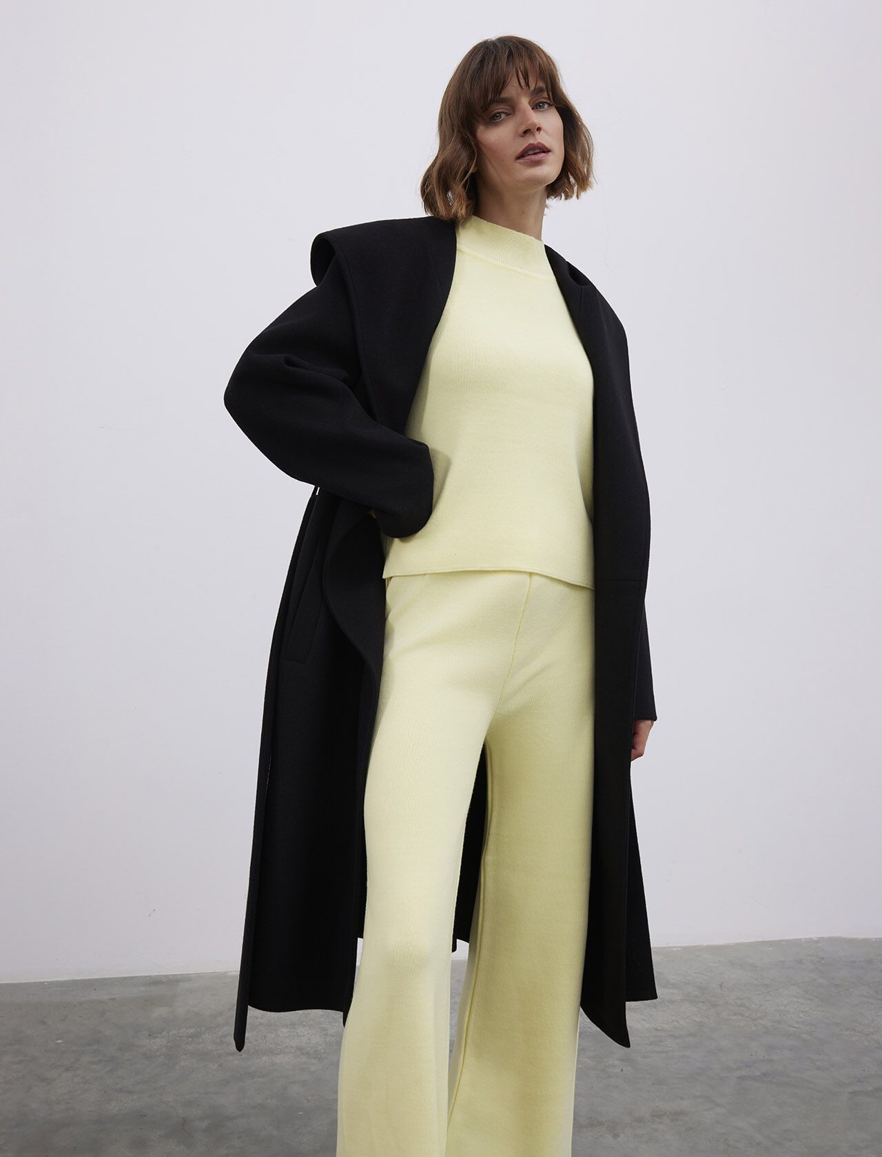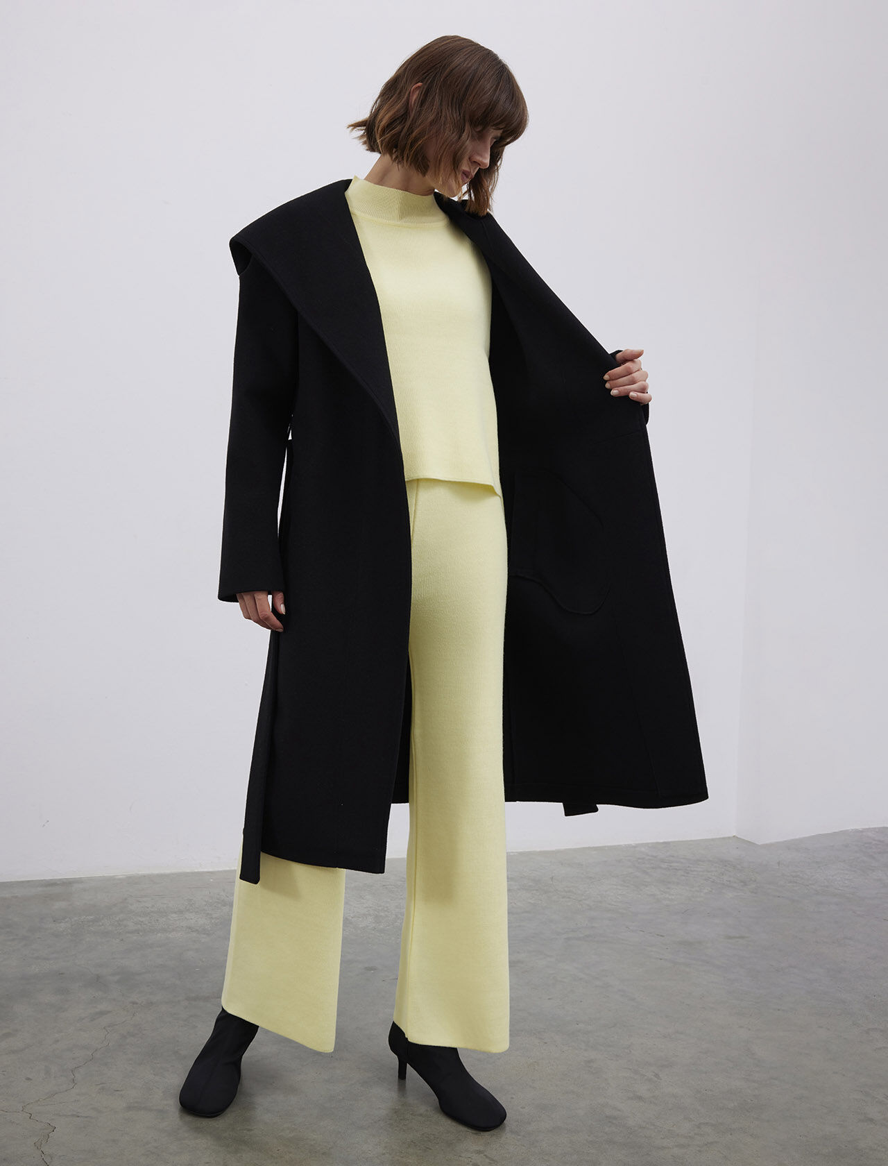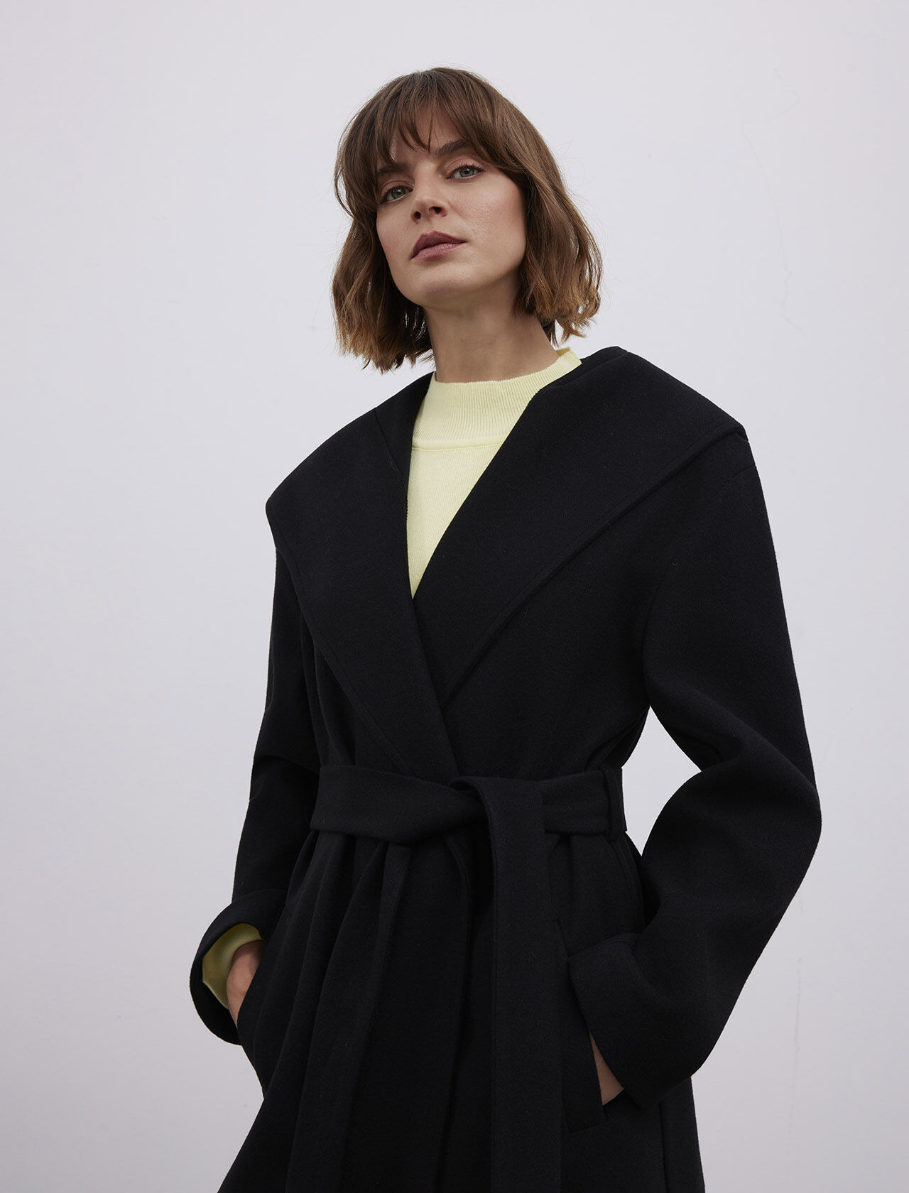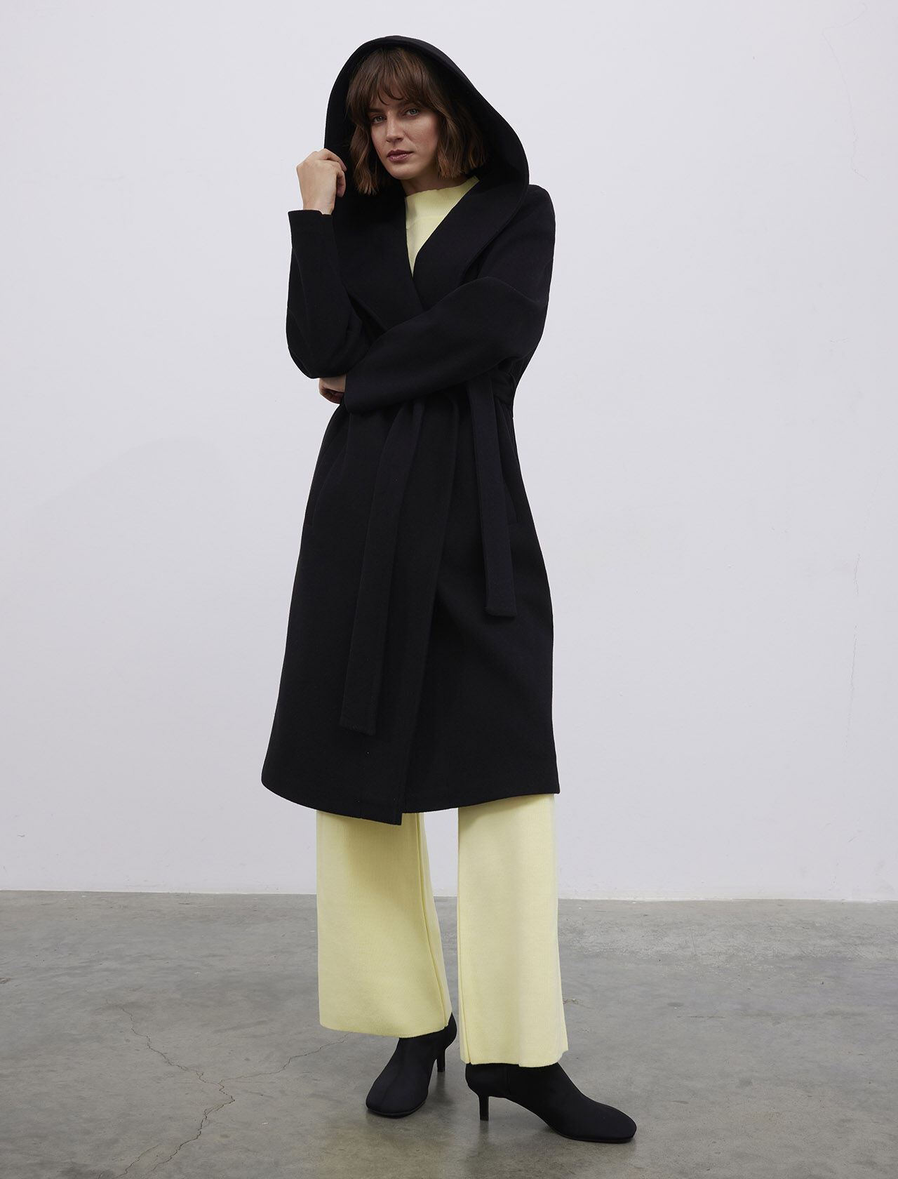 YUN KARISIM KAPUSONLU- KUSAKLI MIDI KABAN