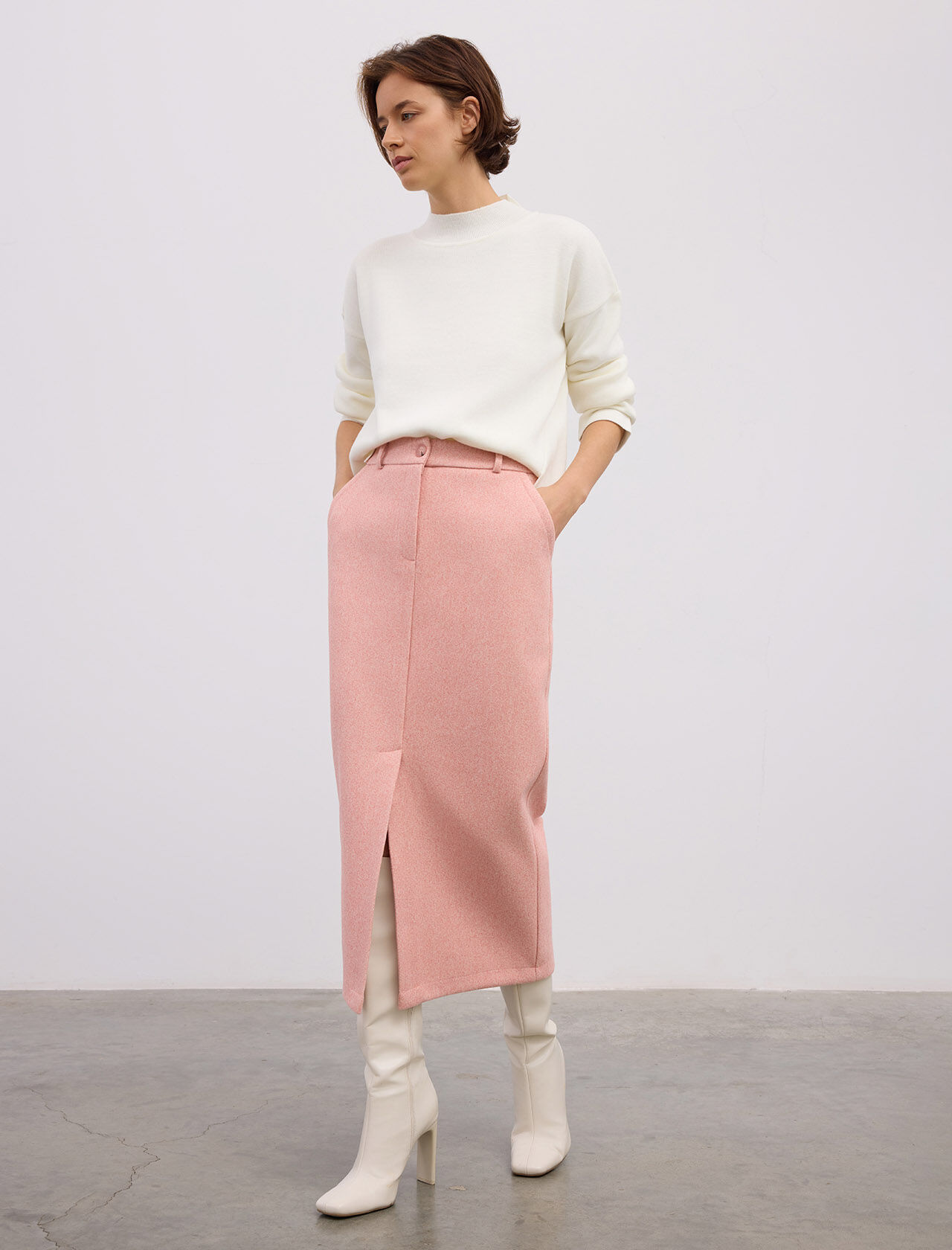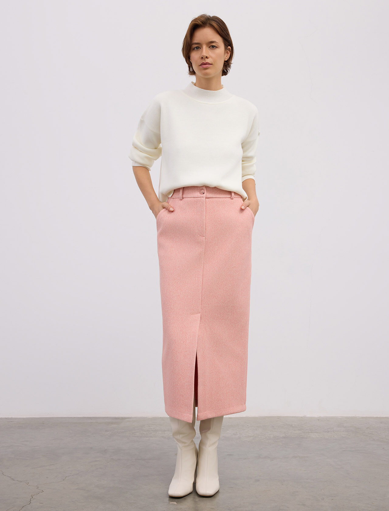 Önde Cep Detaylı Midi Boy Etek