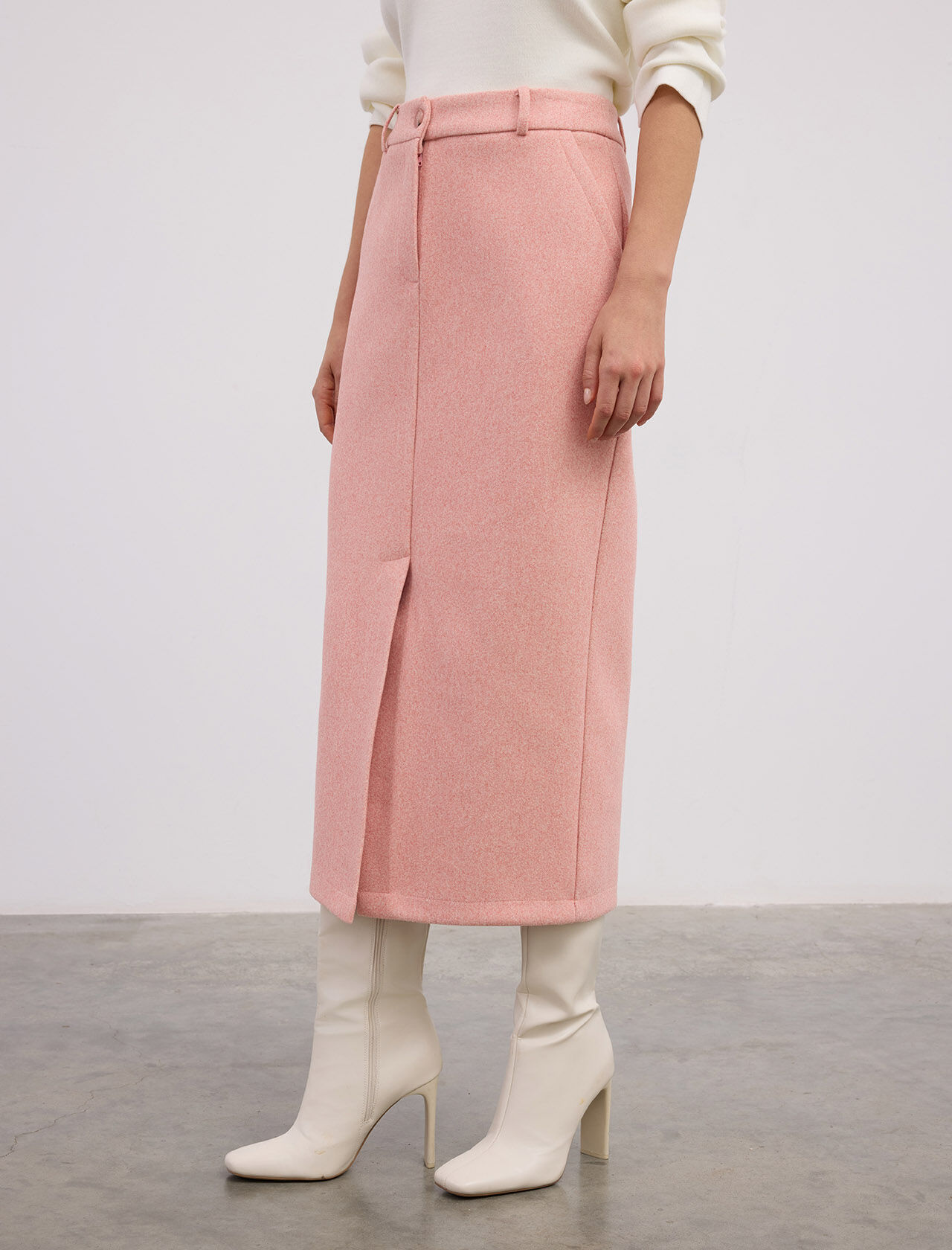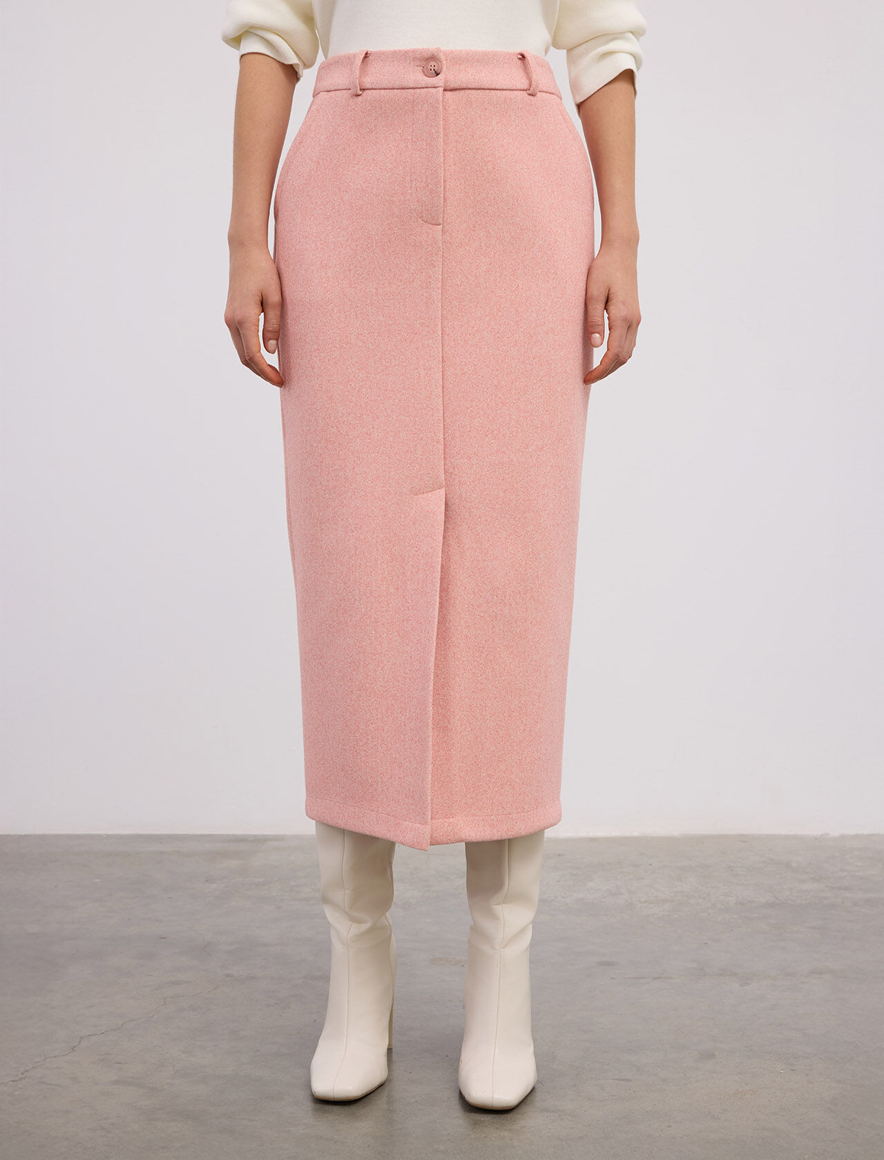 Önden Yırtmaçlı Midi Boy Viskon Karışımlı Etek