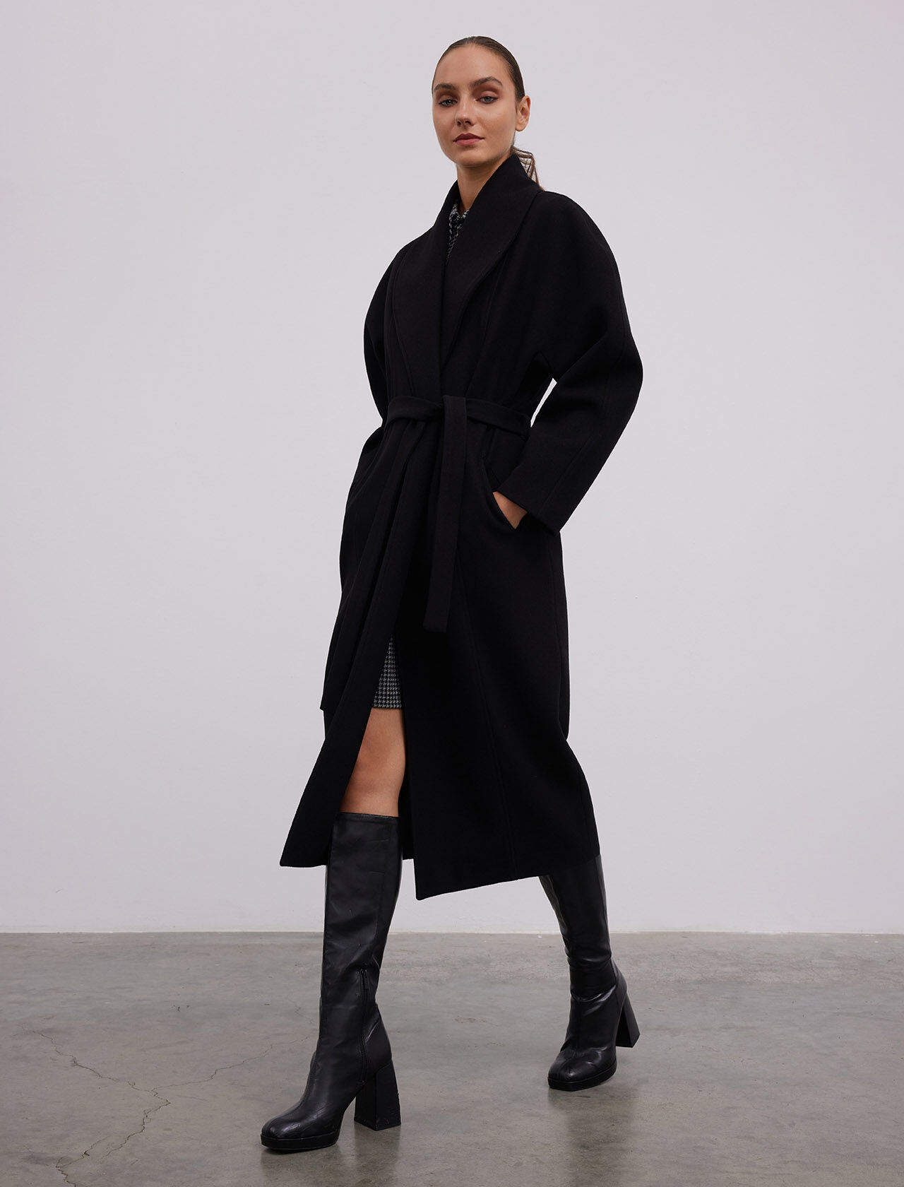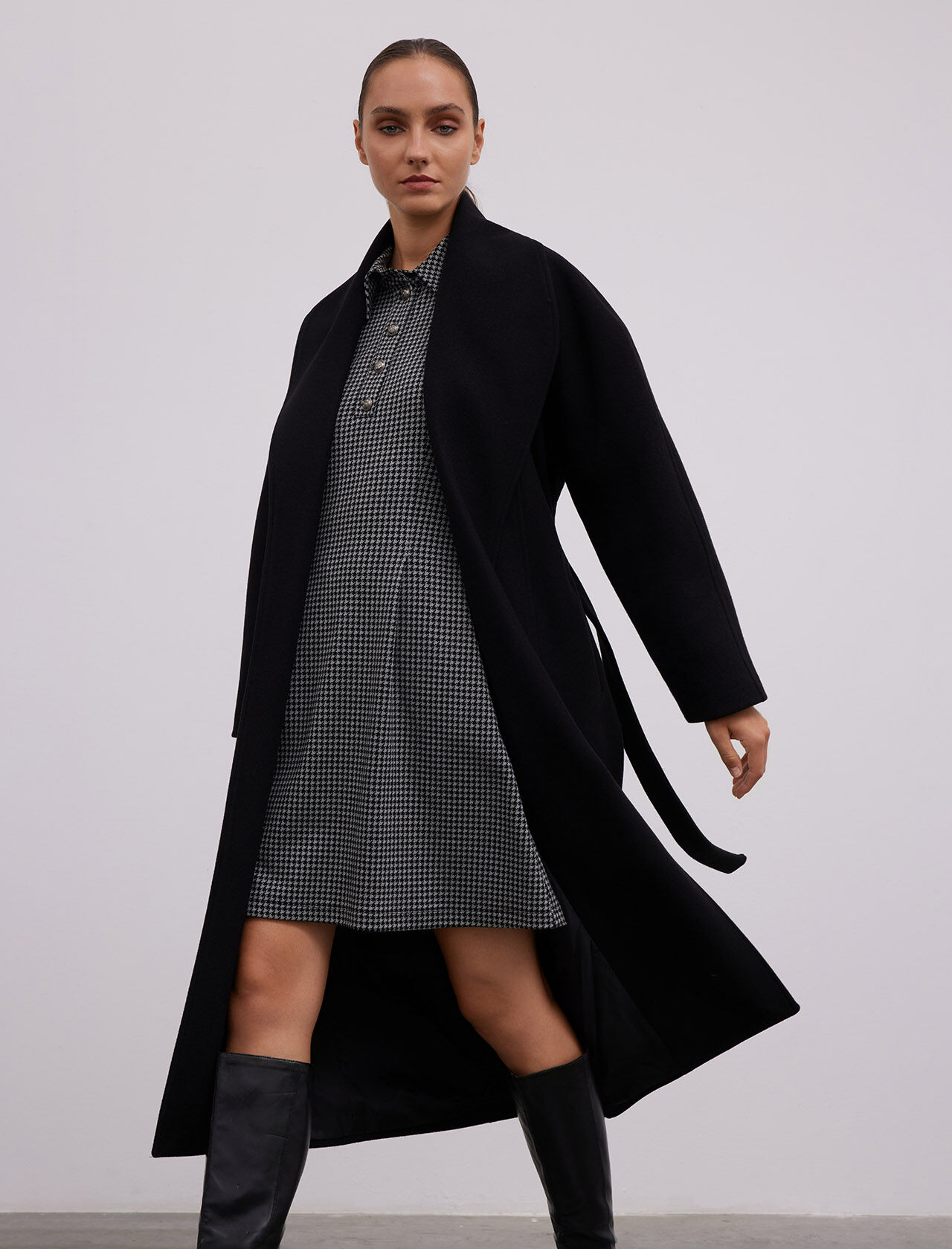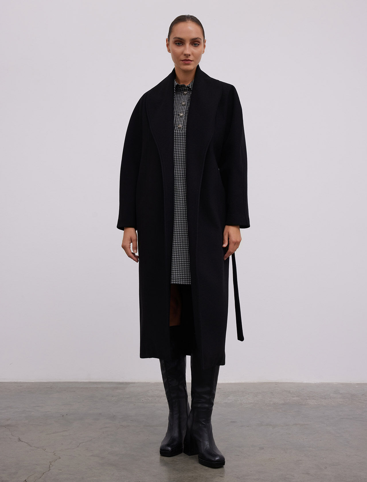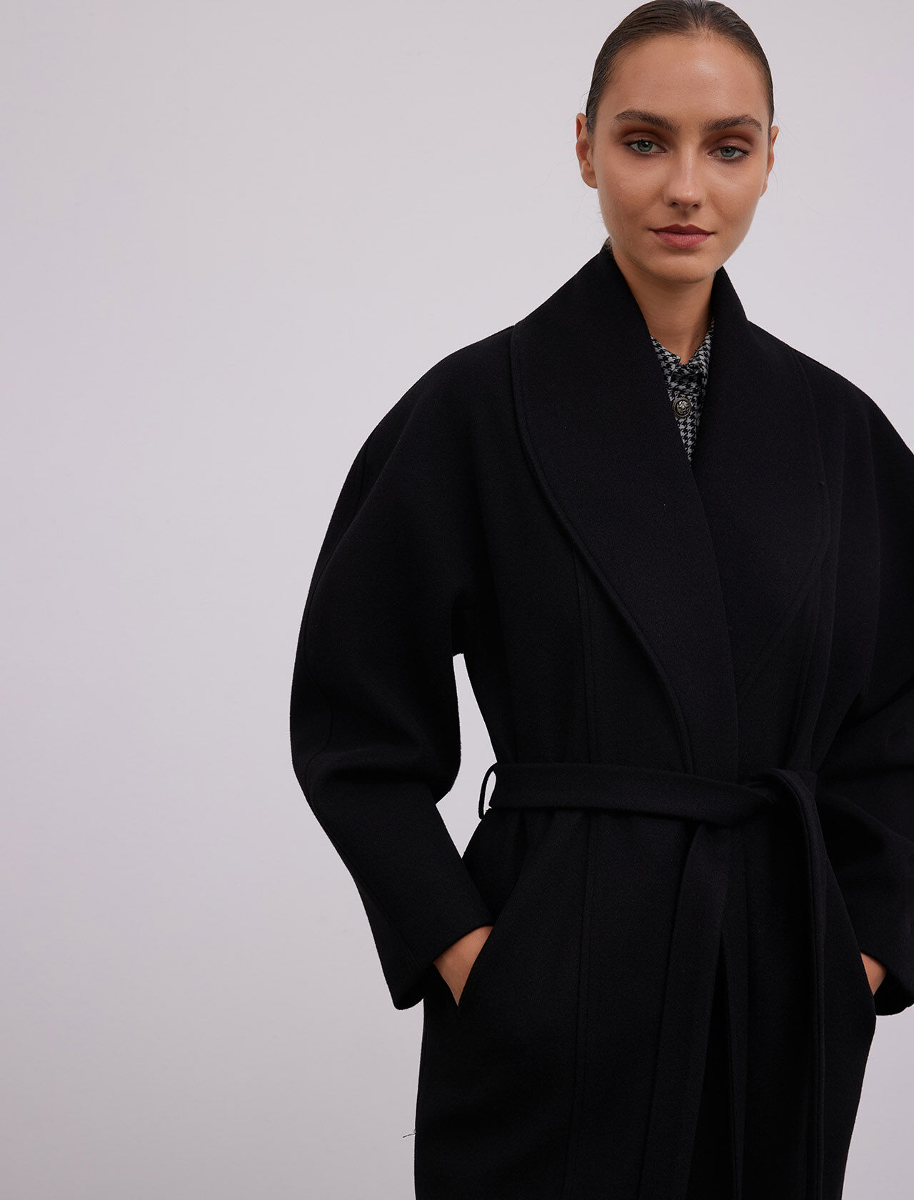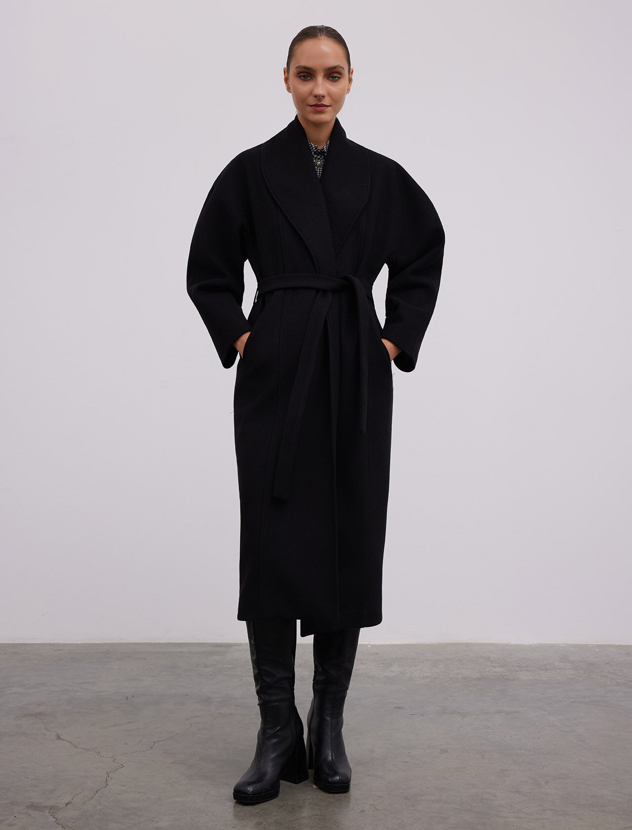 YUN KARISIM SAL YAKA - YARASA KOLLU MAXI KABAN