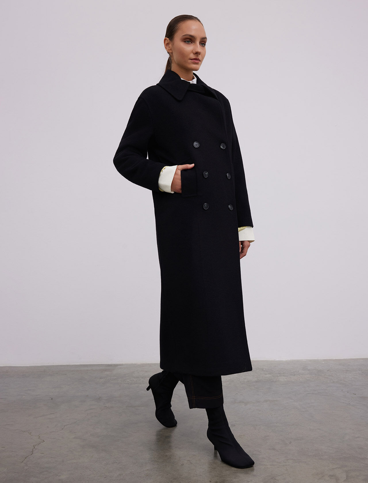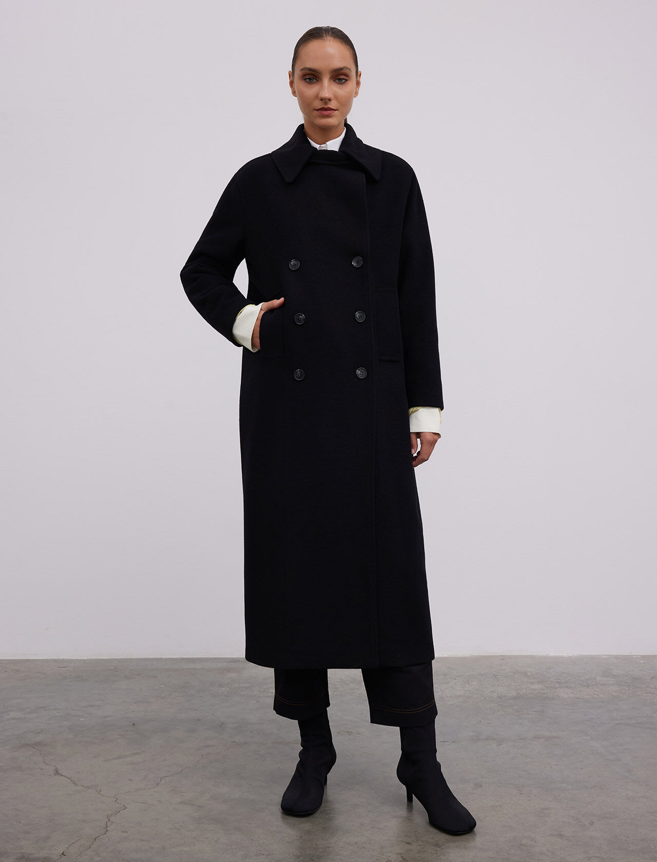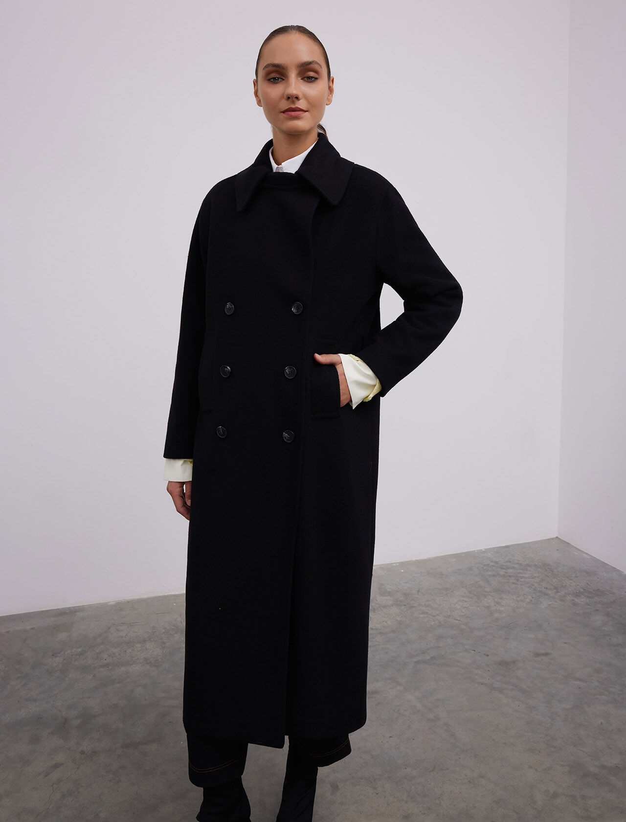 YUN KARISIM YAKA DETAYLI KRUVAZE UZUN KABAN