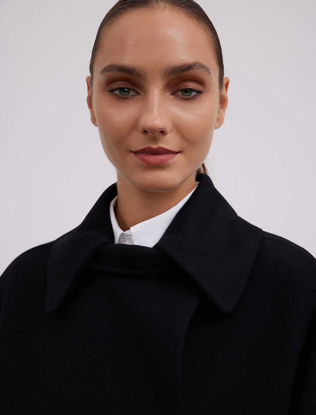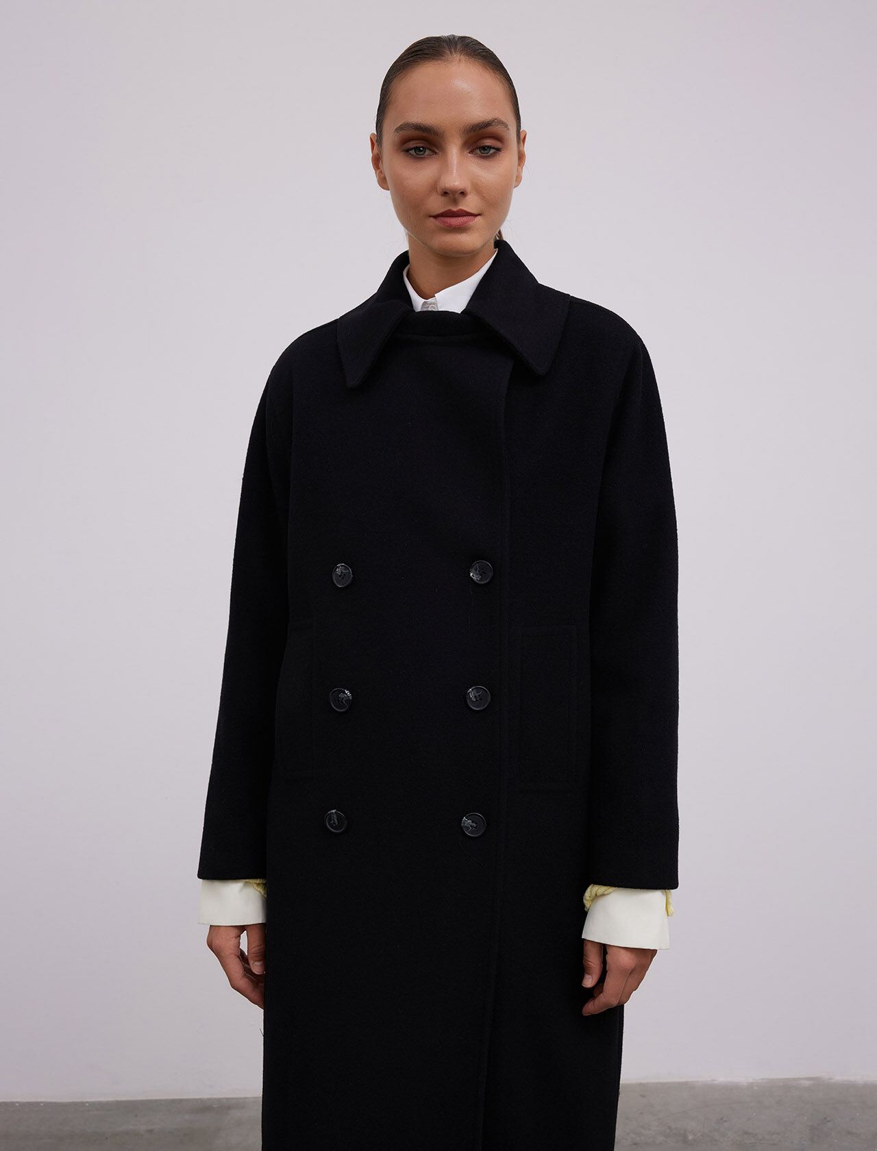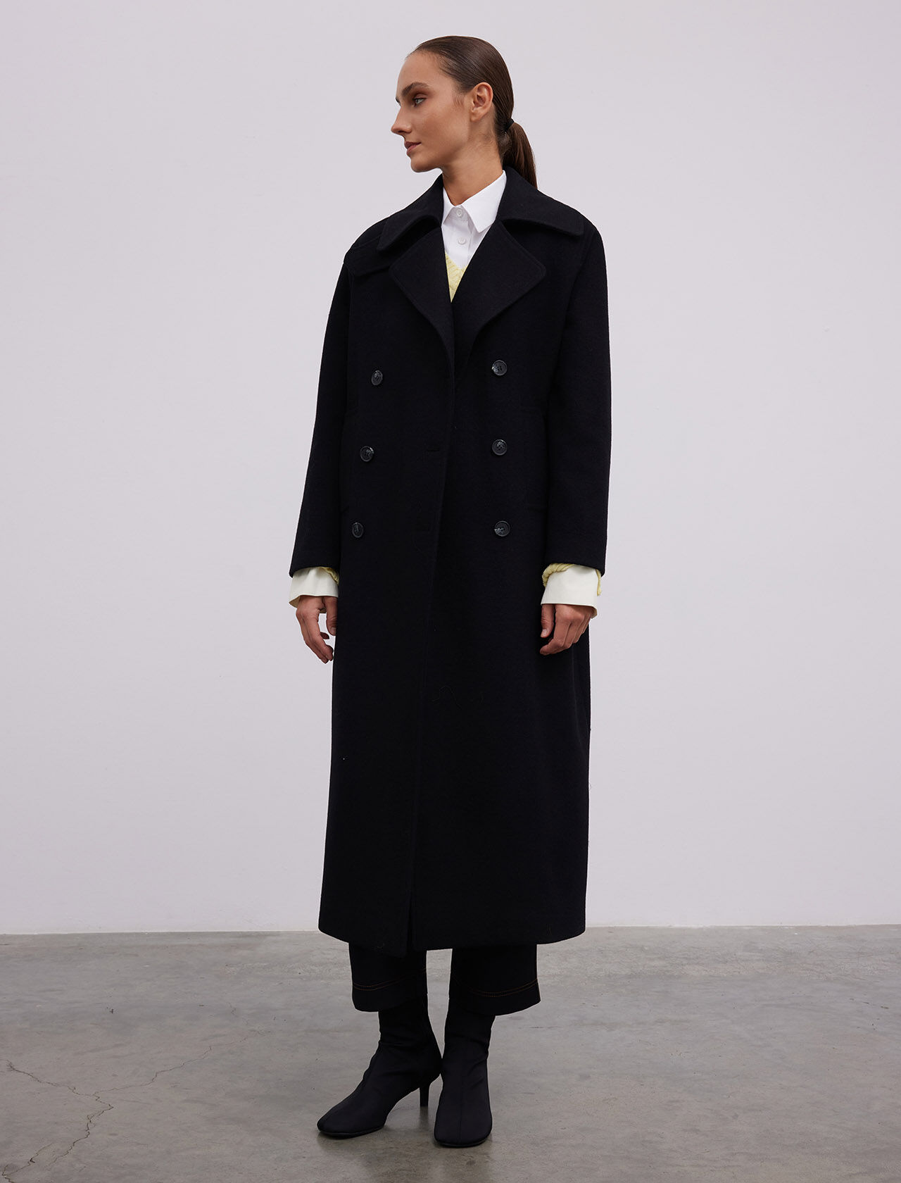 YUN KARISIM YAKA DETAYLI KRUVAZE UZUN KABAN