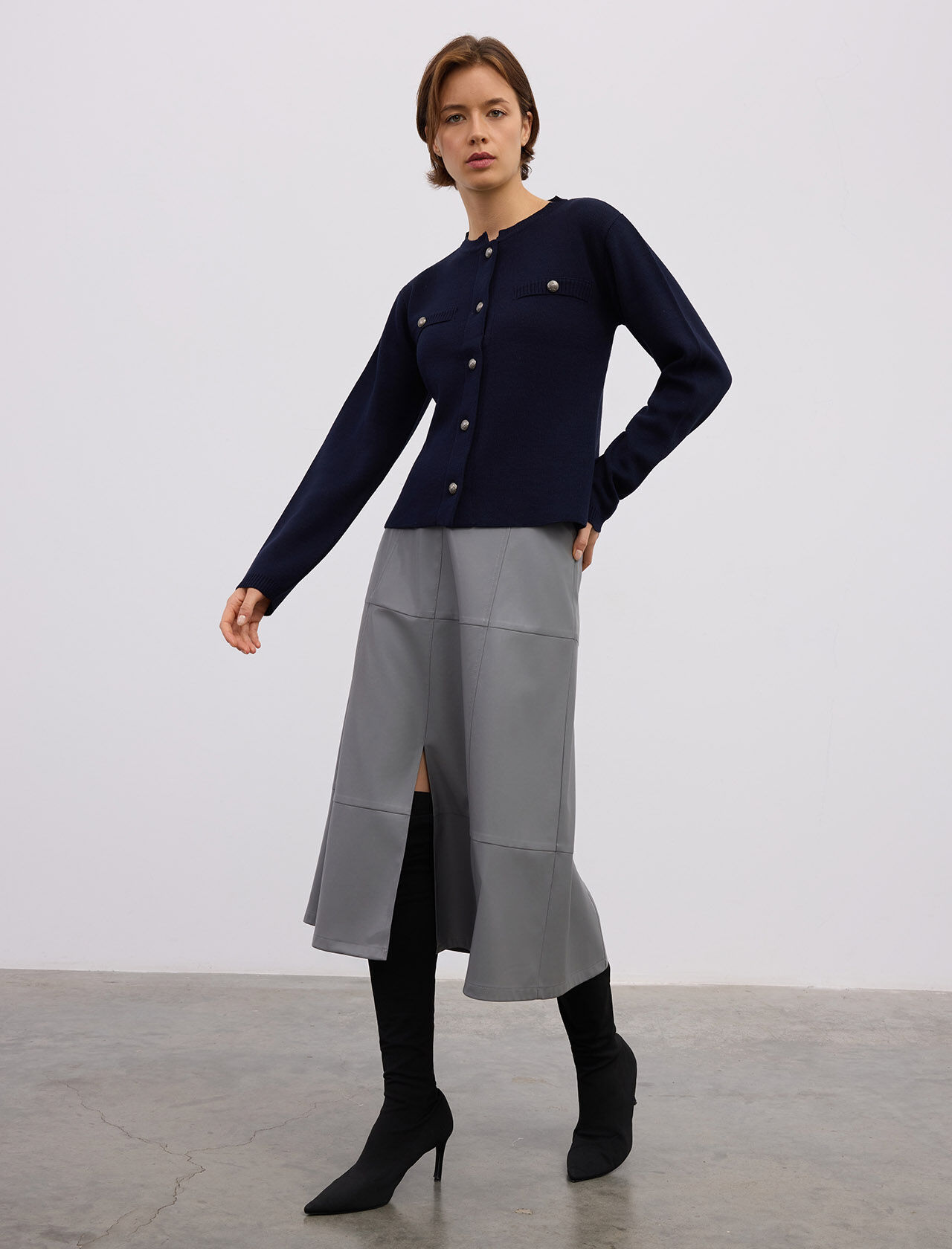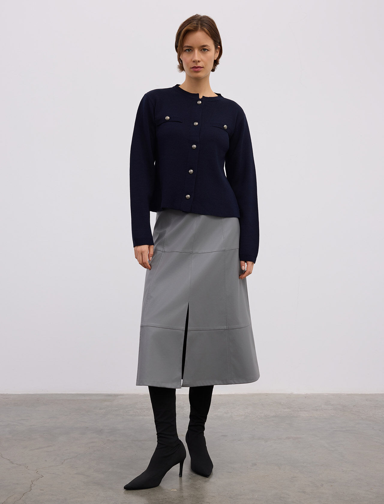 YUN KARISIMLI CEP DETAYLI METAL DUGMELI HIRKA